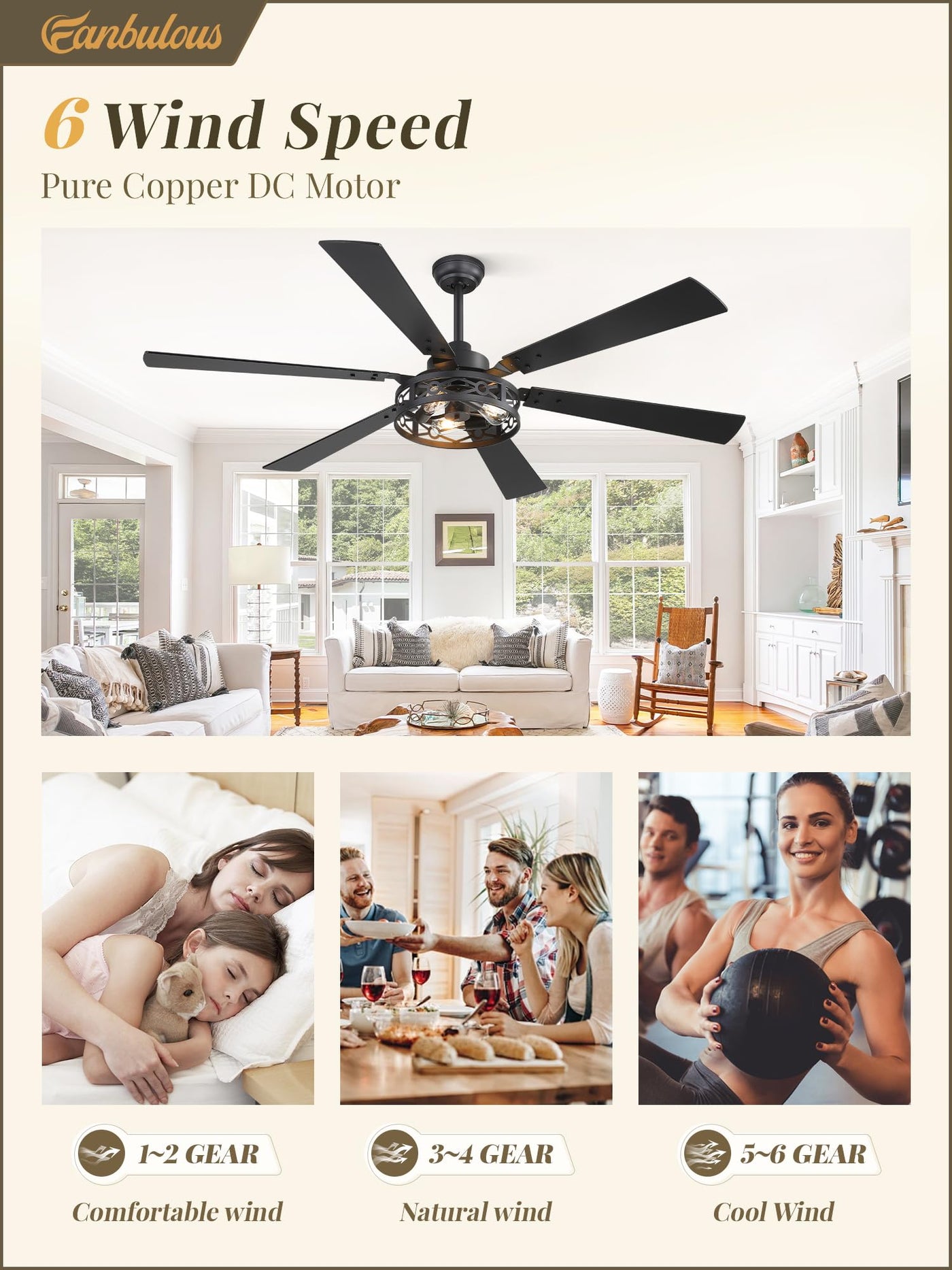 • Q: Is the Fanbulous ceiling fan suitable for quiet environments? A: Yes, the Fanbulous ceiling fan is designed with a powerful yet quiet DC motor, ensuring that your peaceful moments are not disturbed. This makes it an excellent choice for bedrooms, living rooms, and other quiet spaces.