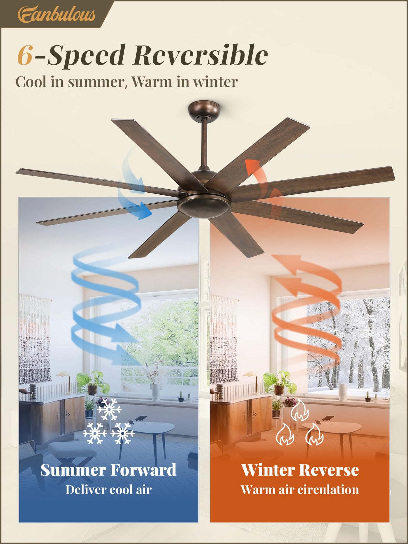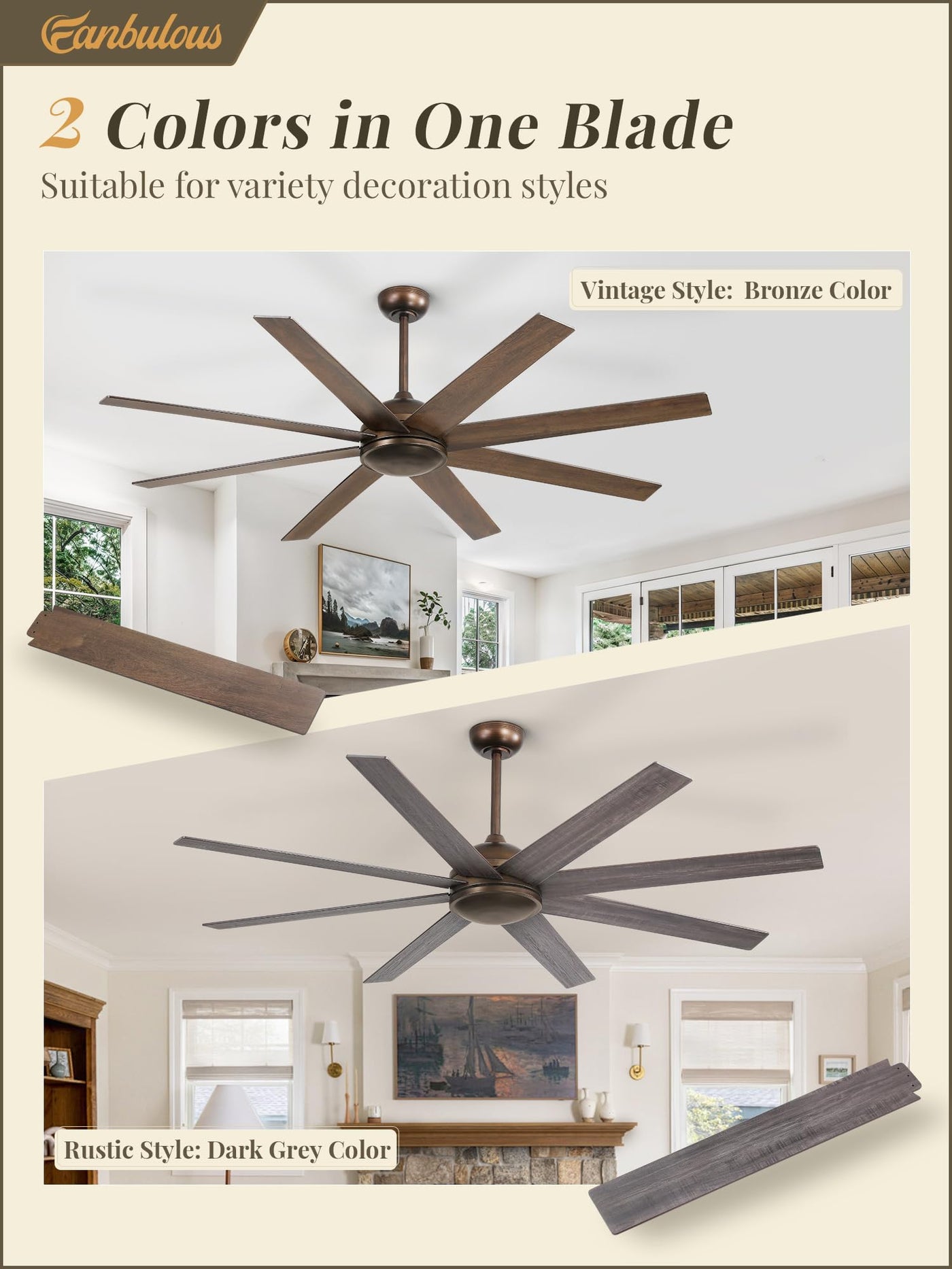 Fanbulous 65 Inch Ceiling Fan No Light Has 6 Wind Speeds, 3 Color Temperatures Adjustable, Reversible Mode, 1/4/8-Hour Timer. Equiped With Powerful, Quiet Dc Motor, It'S Energy Saving. And It Perfect For Indoor And Covered Outdoor Spaces, Like Living Rooms, Bedrooms, Patios And Porches.