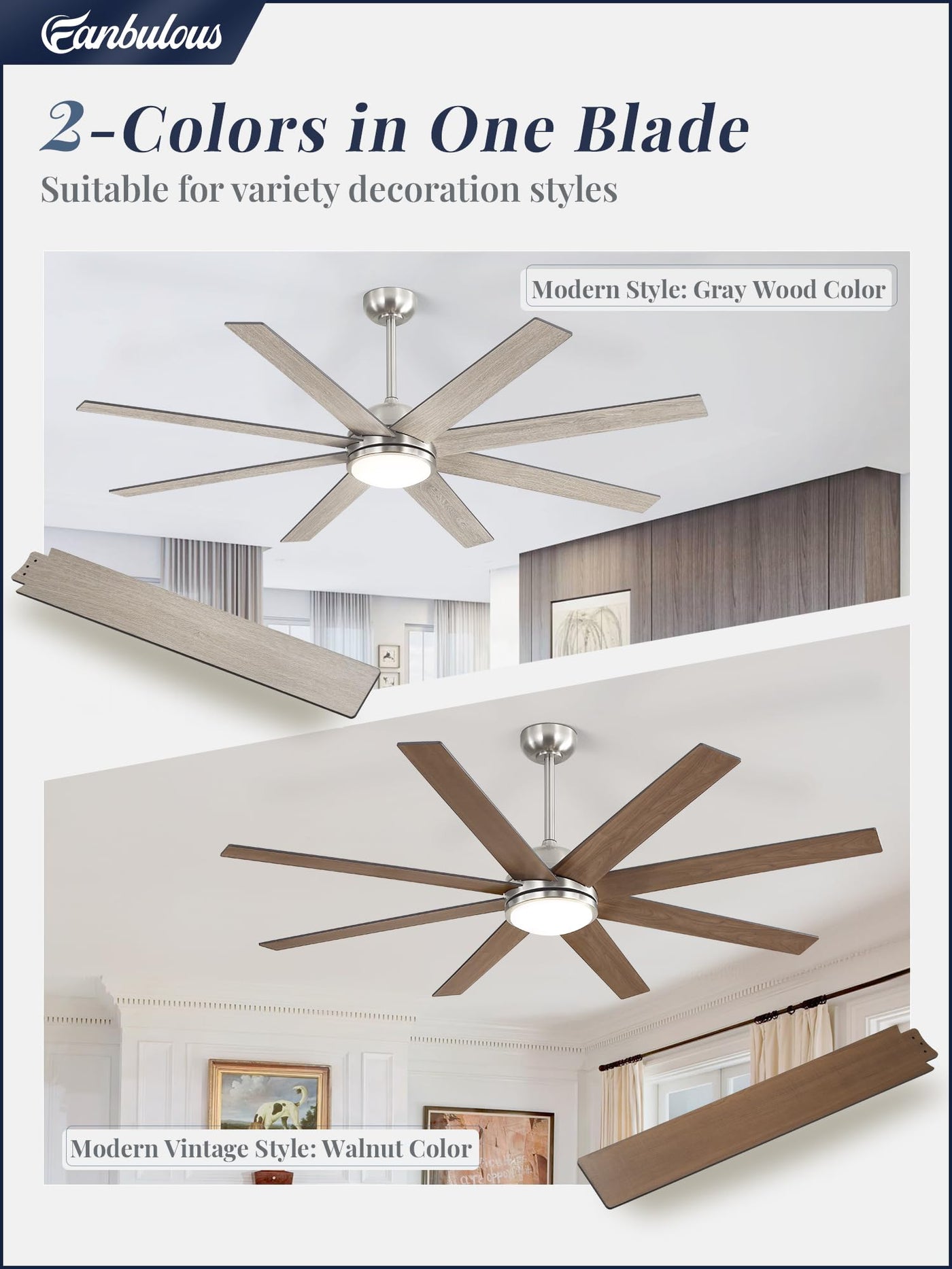 Fanbulous 65 Inch Ceiling Fans With Lights And Remote, Brush Nickel Indoor/Outdoor Ceiling Fan With Quiet Reversible Dc Motor, 6