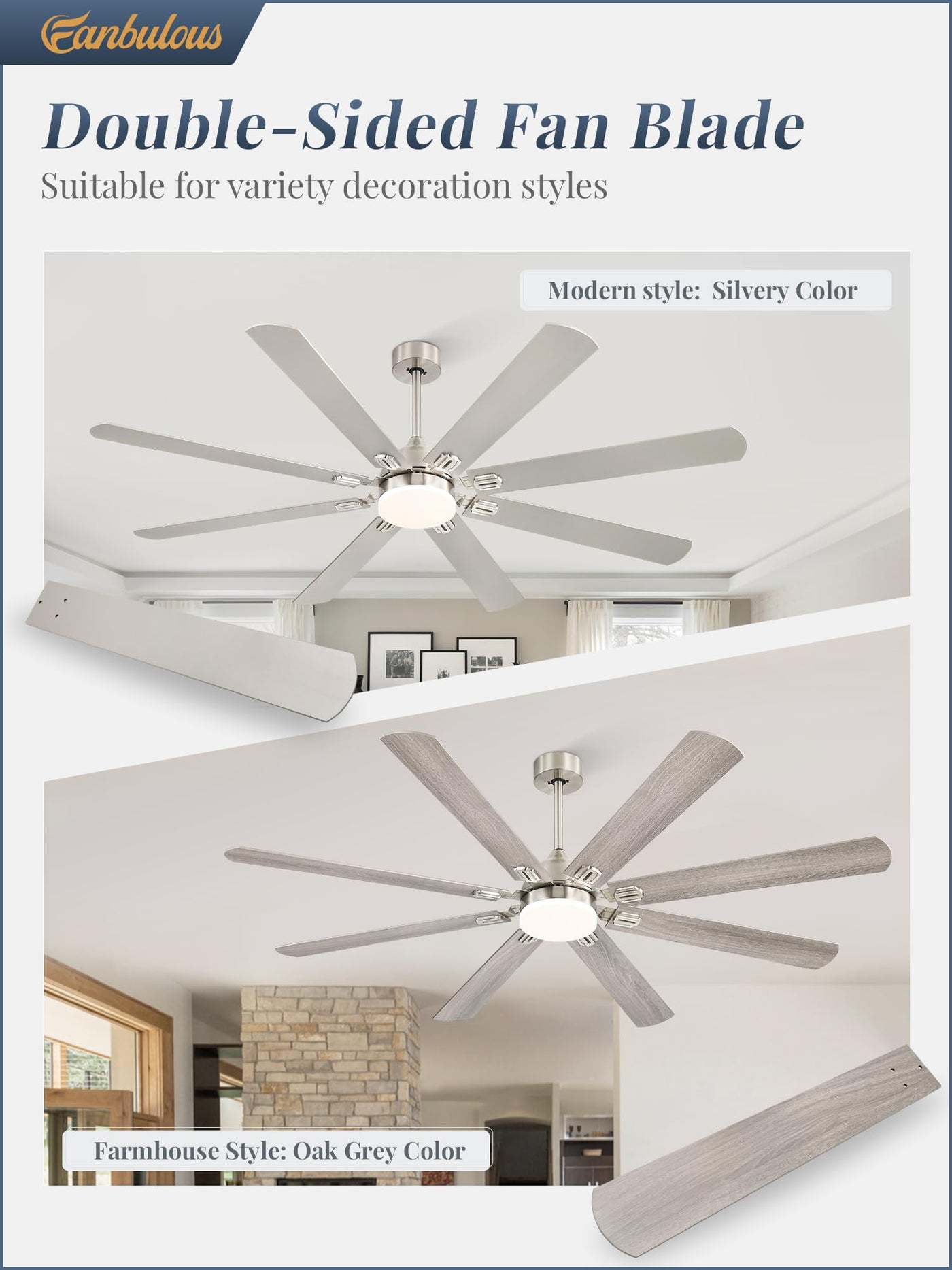 Fanbulous 72 Inch Quiet Indoor/Outdoorceiling Fan With Lights Shows A Modern 8 Blades Design That Embraces An Artistic Balance Of Cutting-Edge Technology, Beauty, And Modern Design. The Smart Ceiling Fan With Lights Is Forward And Reverse Speeds Can Be Controlled By A Handheld Remote. This Ceiling Fans With Lights And Remote Suits A Variety Of Indoor Spaces, Like Living Rooms,Bedroom,Dining Room,Kitchen And Outdoor Spaces Like Patios And Porches.