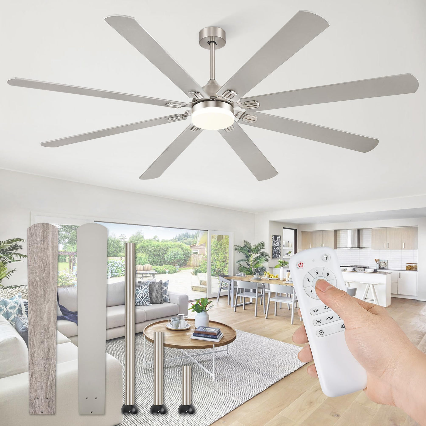 Fanbulous 80 Inch Ceiling Fans With Lights,Nickel Modern Ceiling Fan With Remote,Large Farmhouse Indoor & Outdoor Ceiling Fan Wi