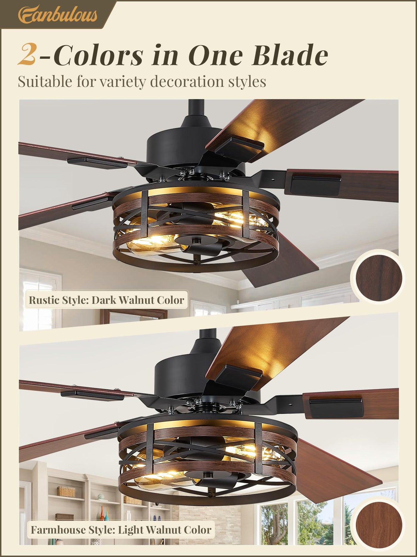 Fanbulous Farmhouse Ceiling Fans With Light, 48 Inch Bedroom Ceiling Fan With Lights, 6 Speed Adjustable, Quiet And Reversible D