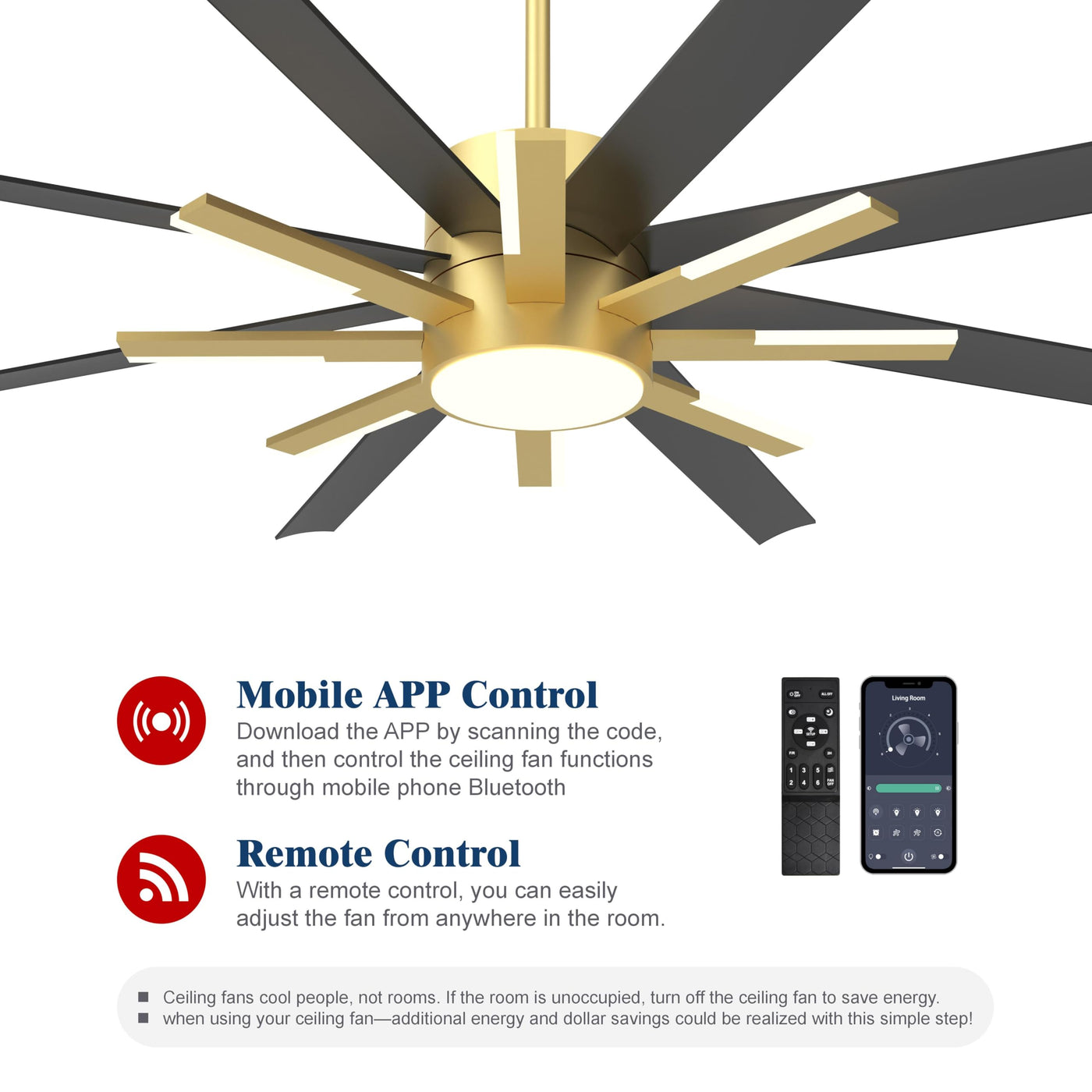 Fande Aire 72 Inch Large Ceiling Fans With Lights And Remote