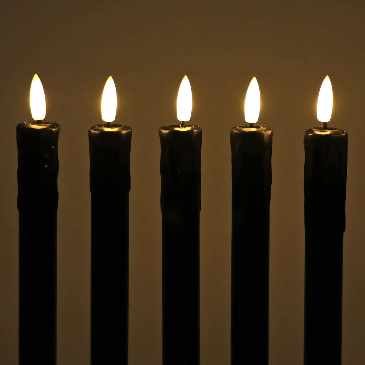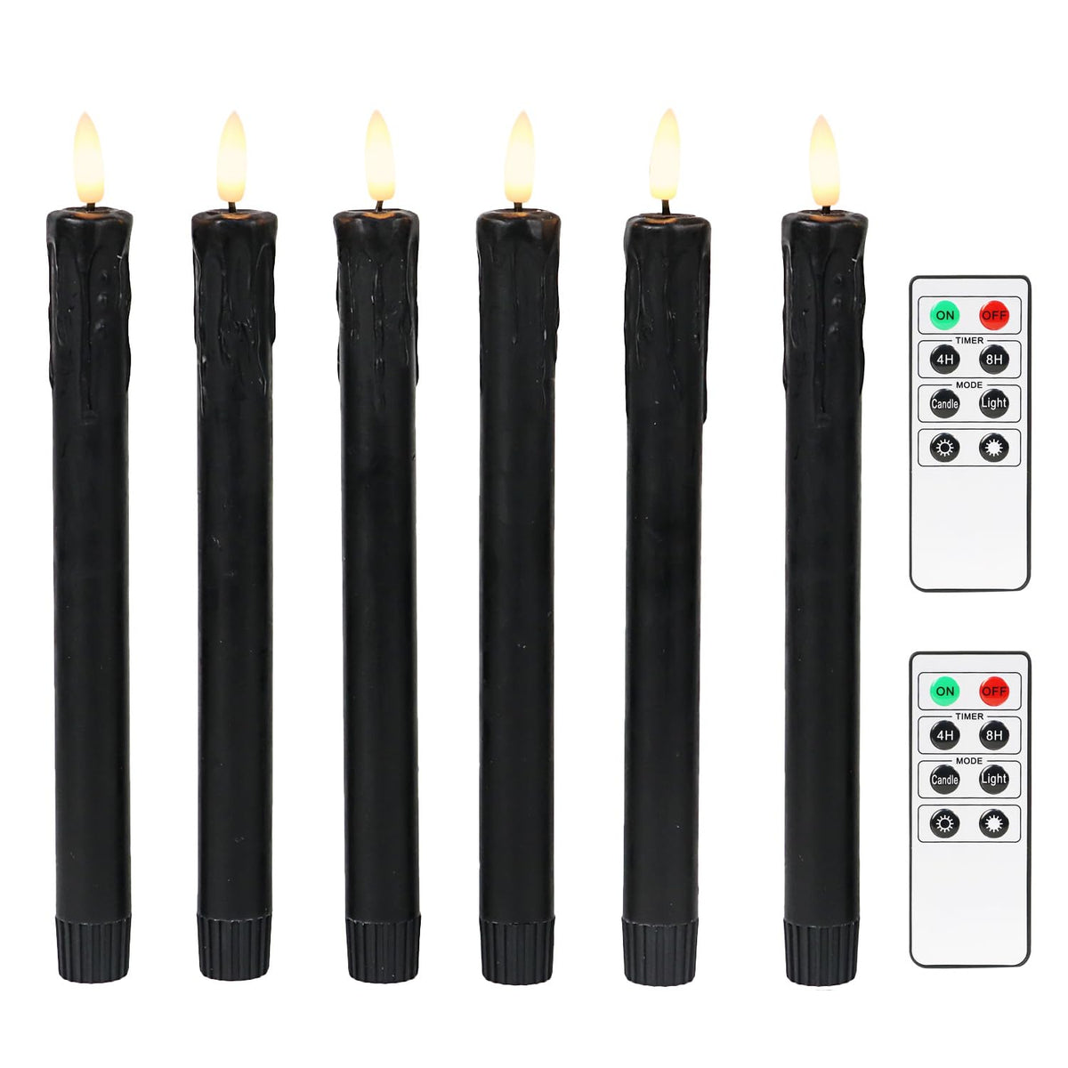 Fanna Black 10'' Flameless Taper Candles For Halloween With 2 Remotes, Battery Operated Candles With Timer Wax Dripping, Warm Wh