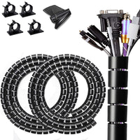 Fanoshon Large Pc Cable Management Tube Sleeve Under Desk Wire Organizer For Cords 2 Pcs Black, 1.1 Inch 5 Ft Ez Spiral Cable W
