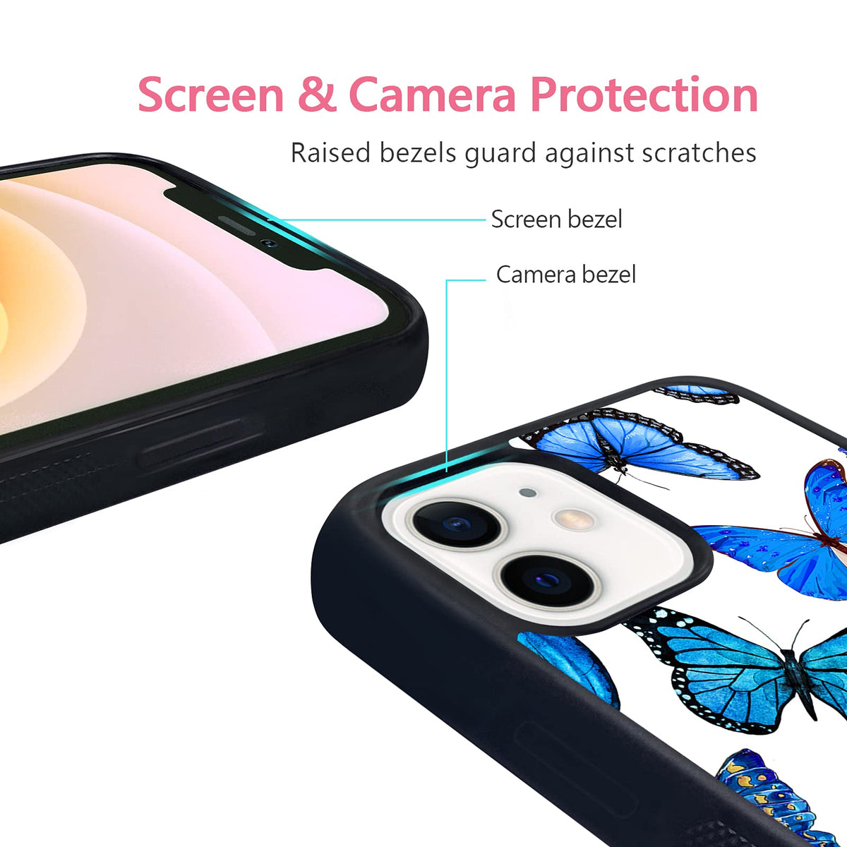 Fanxi Blue Butterfly Cell Phone Case For Iphone 12/12 Pro 6.1 Inch Shockproof Protective Cute Cool Butterflies Phone Case Phon