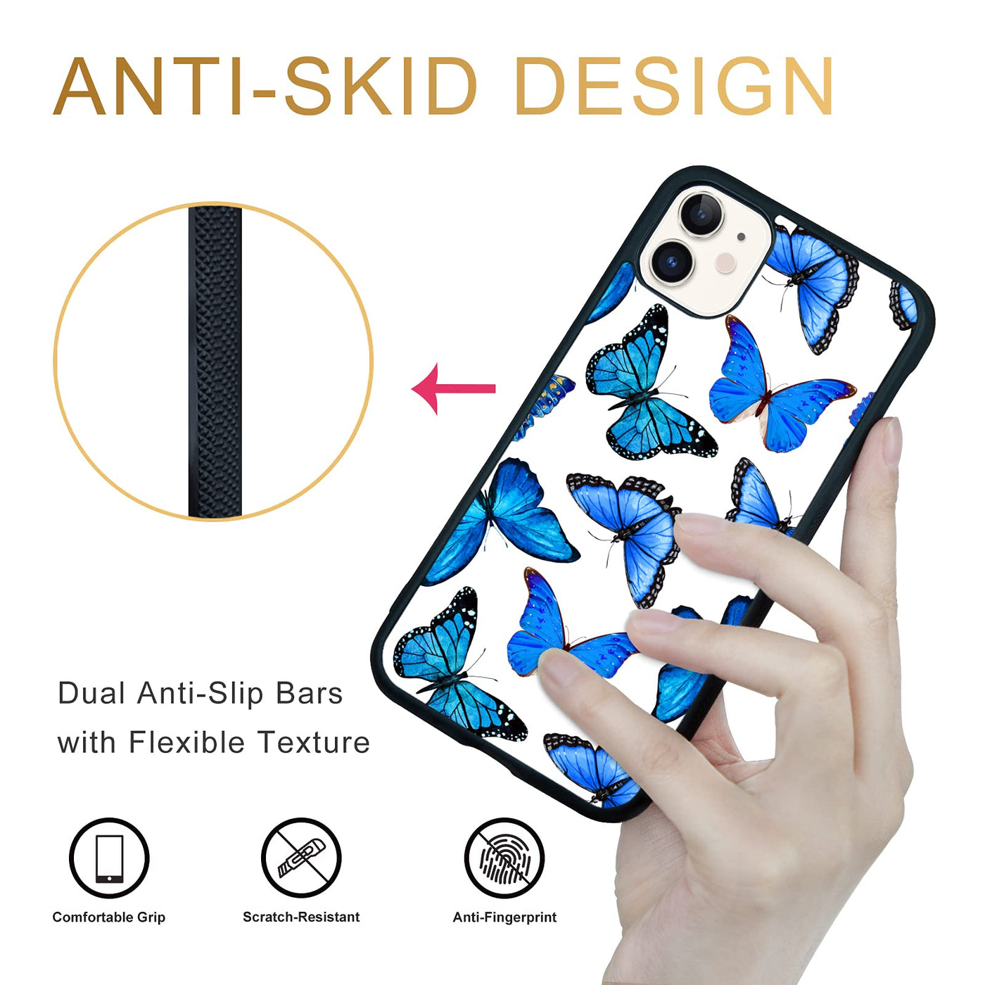 Fanxi Blue Butterfly Iphone Case For 11 6.1 Inch Shockproof Protective Cute Cool Blue Butterflies Phone Case Designed For Ipho