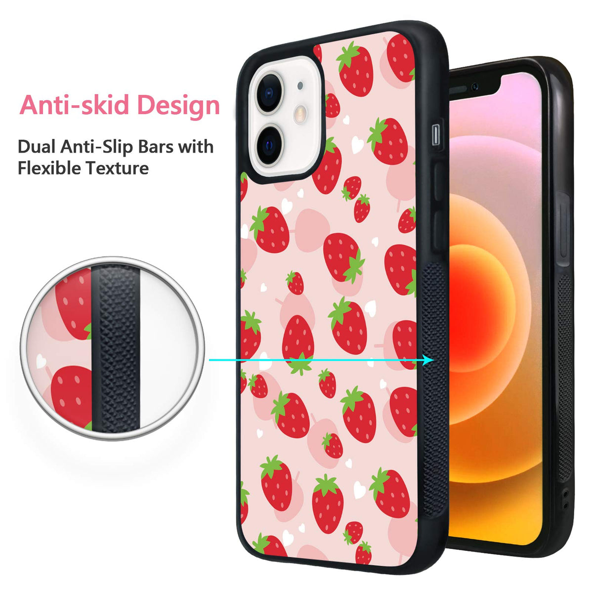 Fanxi Pink Strawberry Phone Case For Iphone 12 6.1 Inch Shockproof Protective Cute Cool Strawberry Pink Phone Case Designed Fo