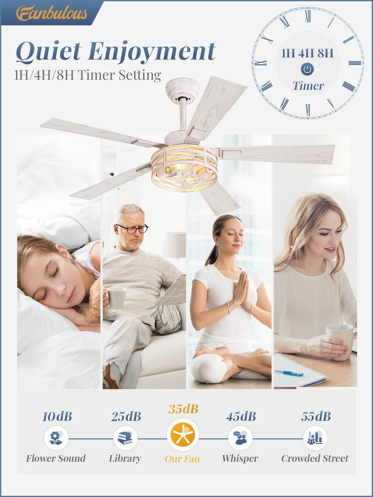 Farmhouse Ceiling Fans With Light, 48 Inch Bedroom Ceiling Fan With Lights, 6 Speed Adjustable, Quiet And Reversible Dc Motor, 5