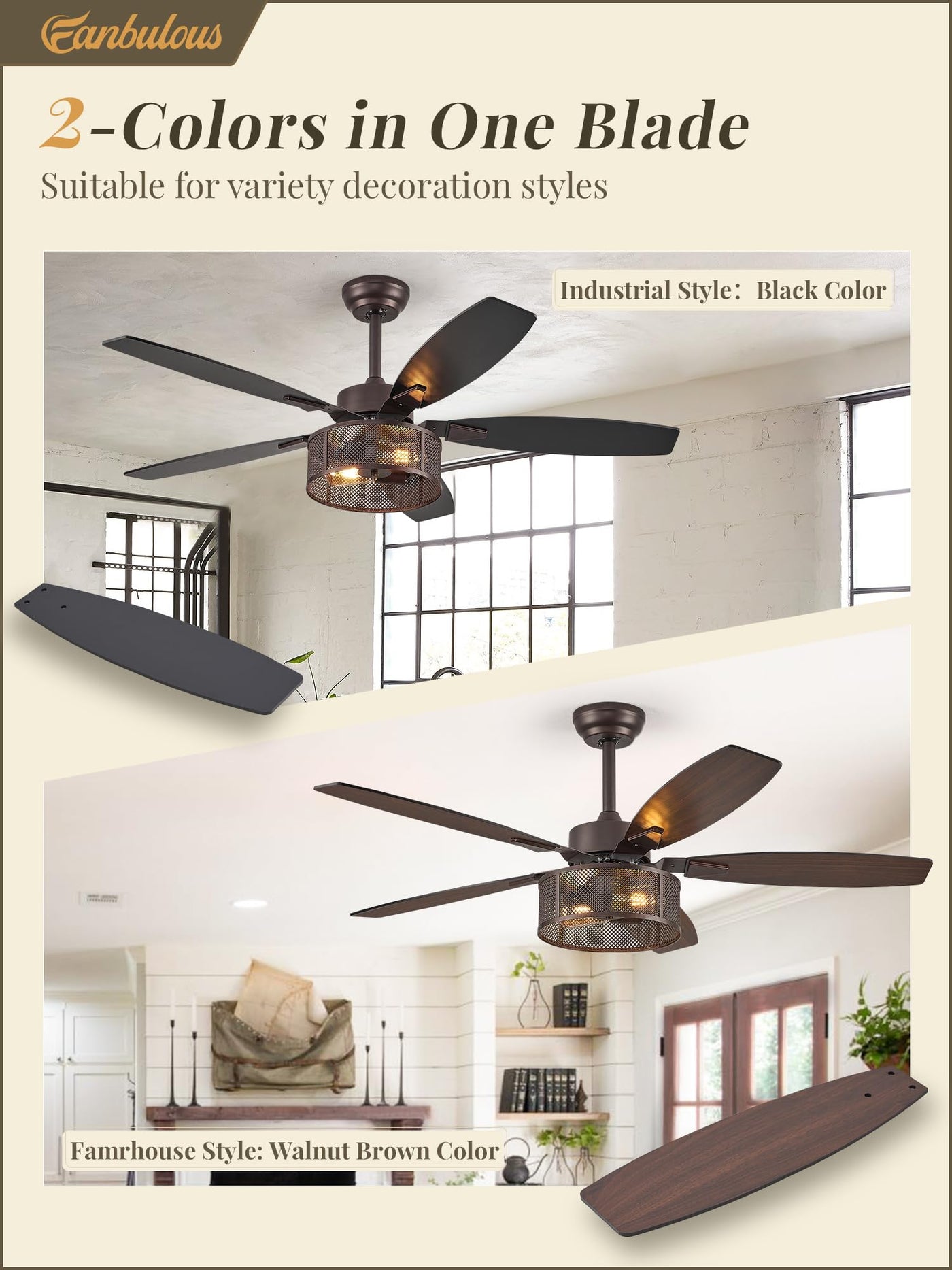 Q: Is the ceiling fan suitable for outdoor use?A: The Farmhouse Oil Bronze Ceiling Fan is designed for indoor use in areas such as bedrooms, living rooms, kitchens, and covered patios. It is recommended to ensure the installation area is protected from direct exposure to the elements.