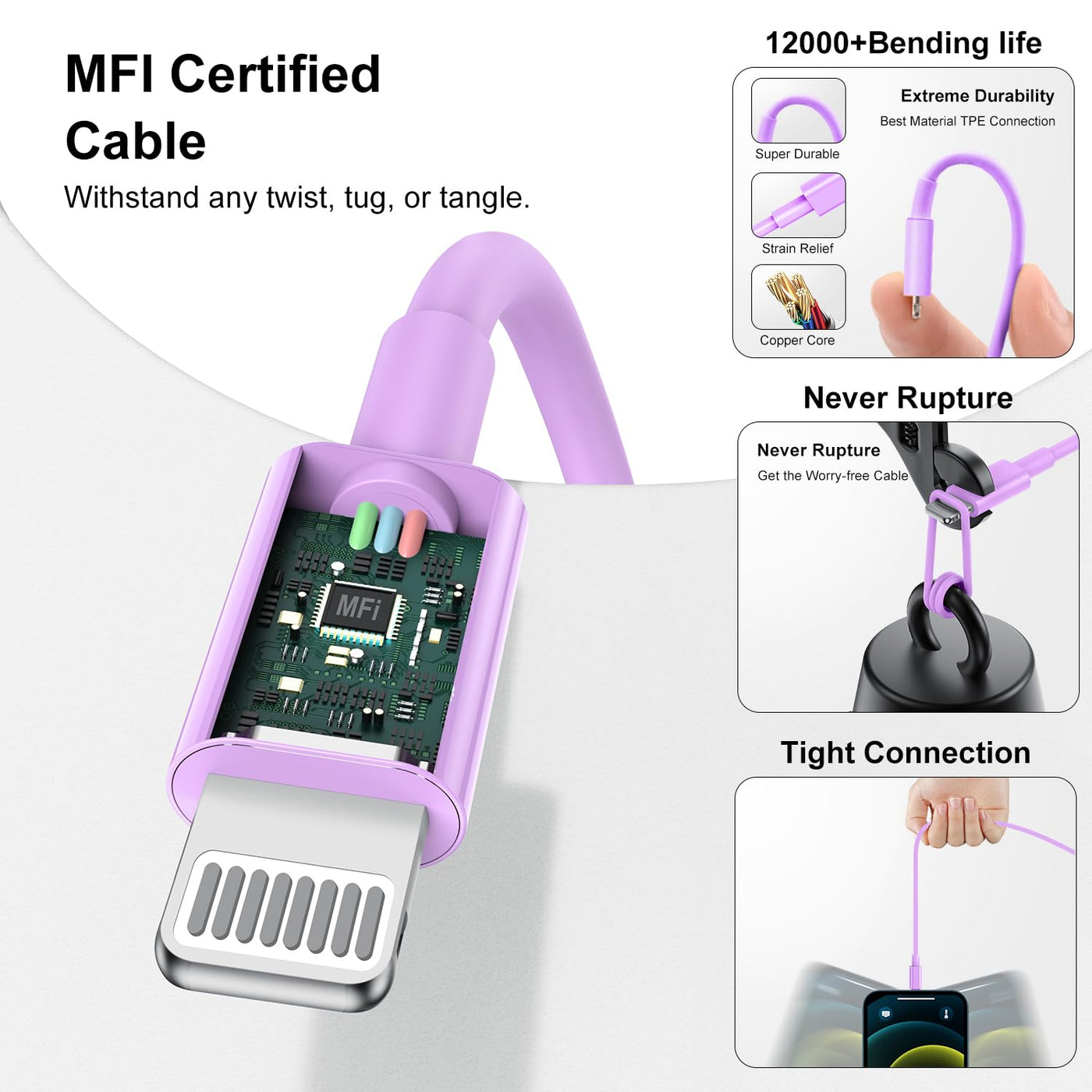 Q: Is the charging cable safe to use with my Apple devices?A: Yes, the charging cable features a multi-point safety system that protects against over-voltage, over-charge, and over-heat, ensuring safe and efficient charging for your devices.