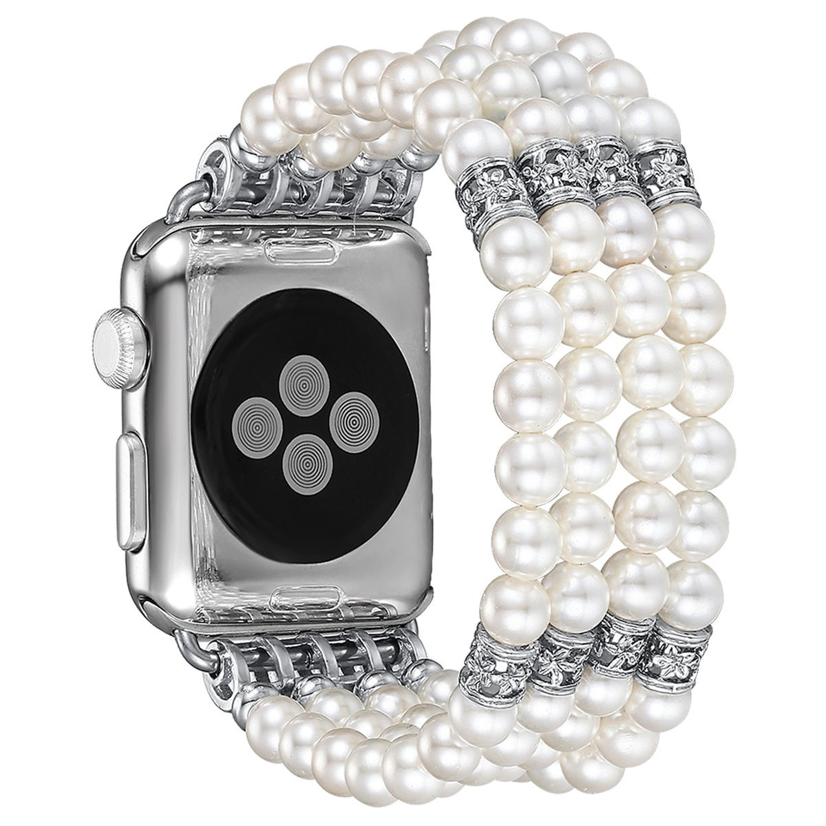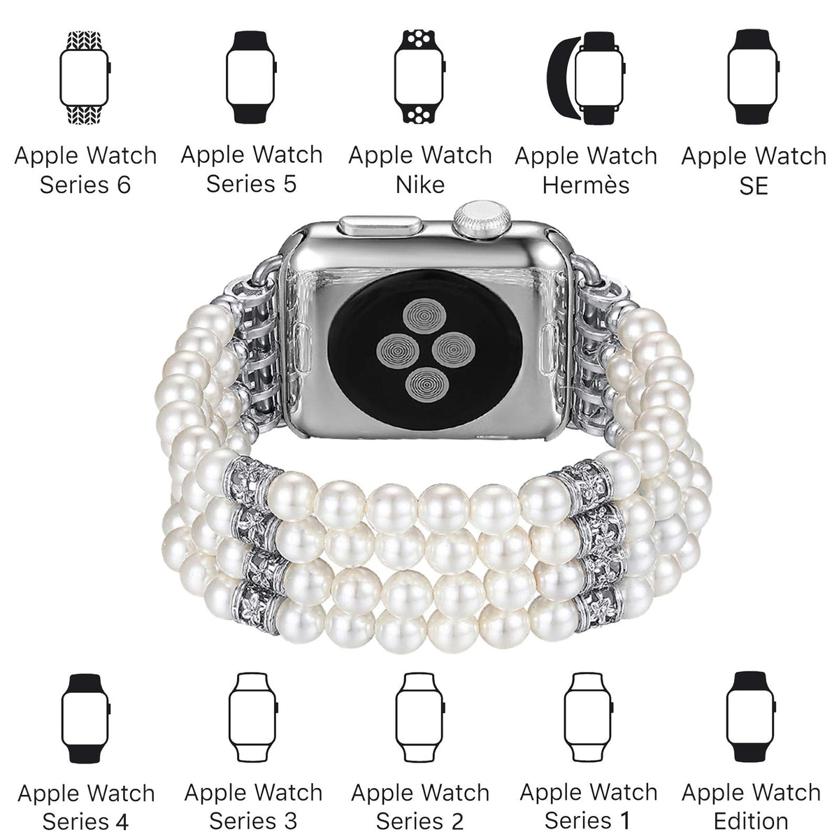 Fastgo Compatible With Pearl Apple Watch Bands 38Mm 40Mm 41Mm Women, Fancy Elastic Beaded Pearl Replacement Band Bracelet For Iw