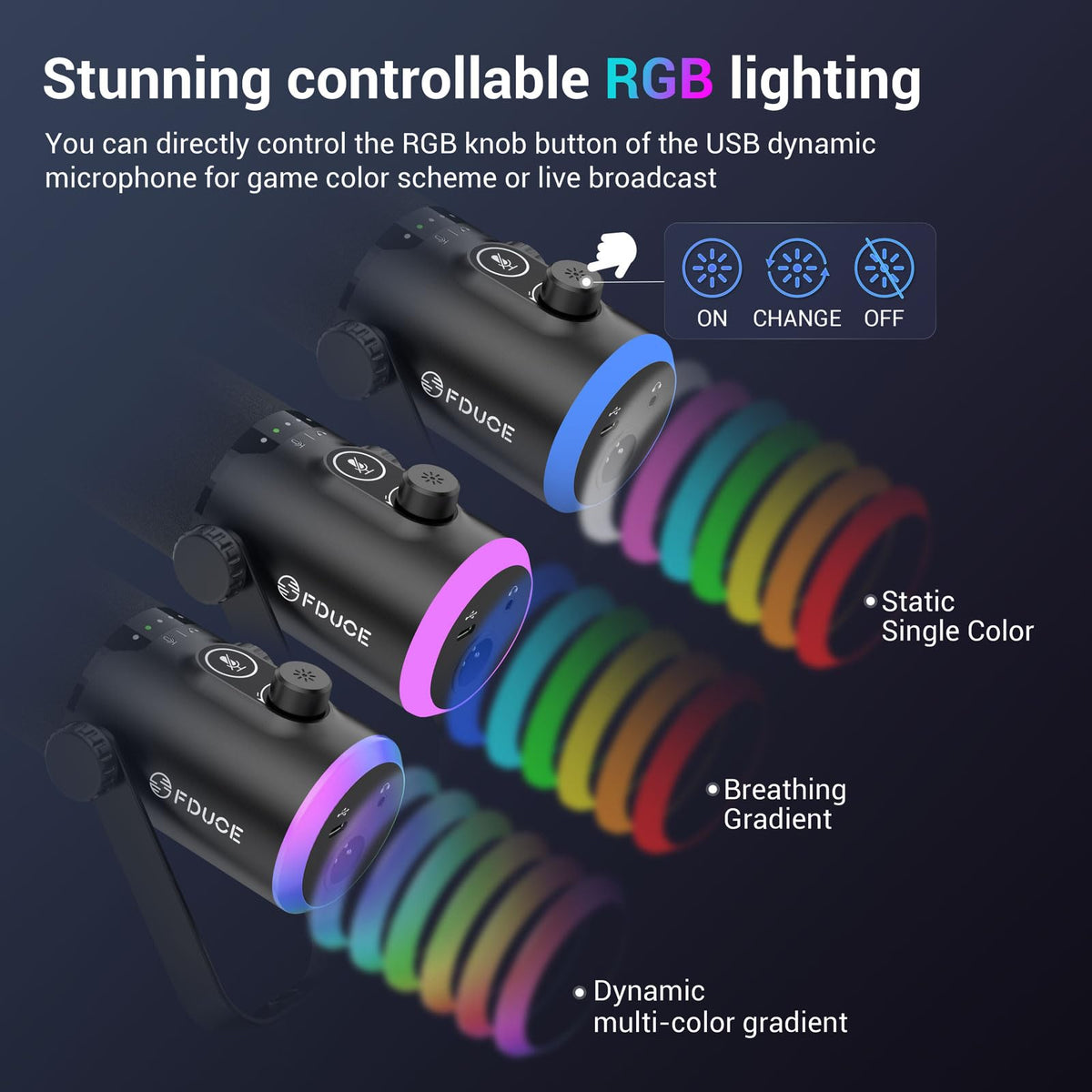 Fduce Usb/Xlr Gaming Microphone Kit, Dynamic Pc Mic For Podcasting Streaming, Computer Rgb Mic Kit With Boom Arm Stand, Mute But