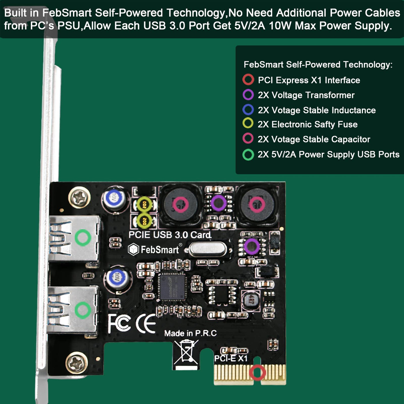 Febsmart 2 Ports Superspeed 5Gbps Usb 3.0 Pci Express Expansion Card For Windows, Mac Os X And Linux Desktop Pcs, Built In Self Powered Technology, No Need Additional Power Supply (Fs U2S Pro)