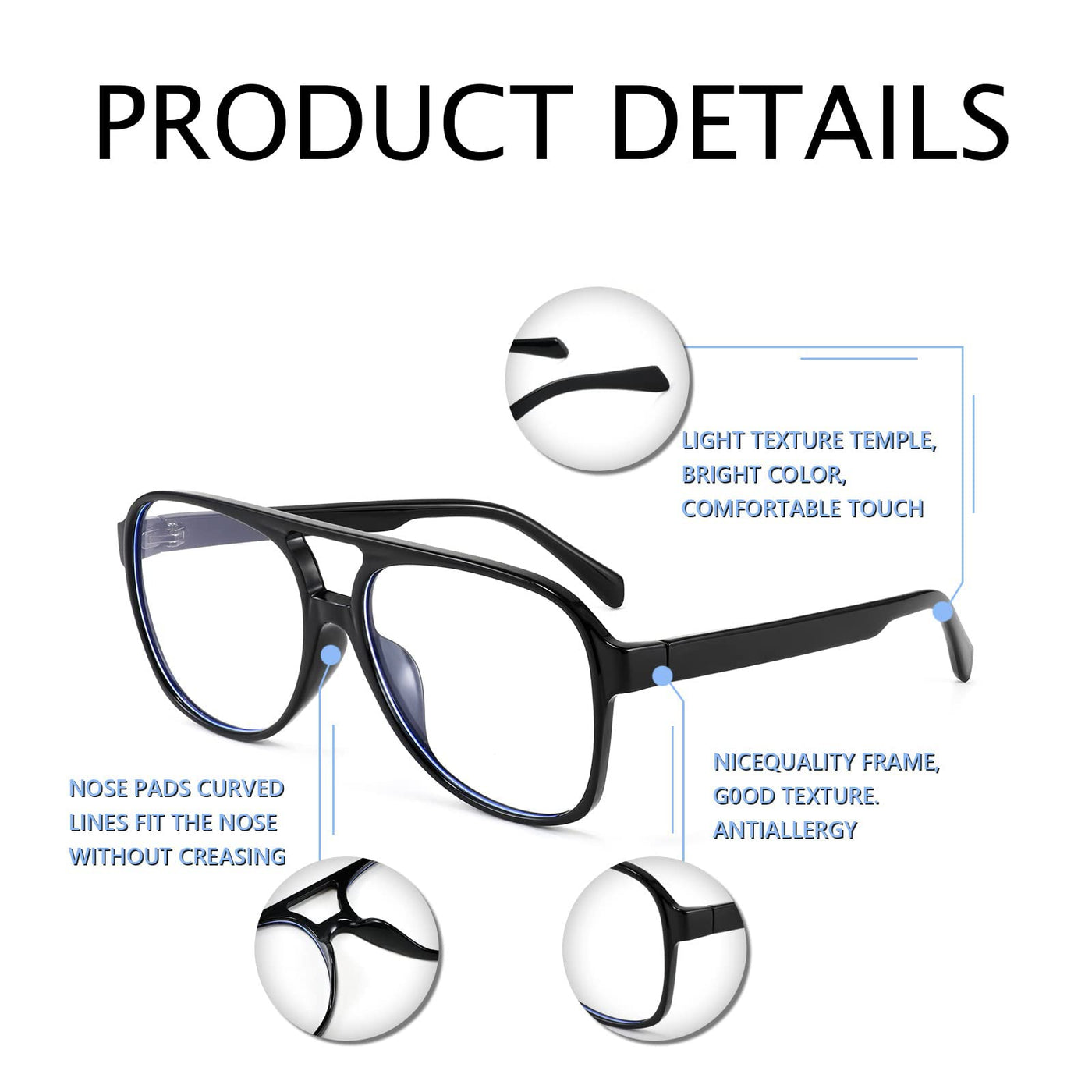 Anti Blue Ray & Replaceable Lenses - This Is An Anti Blue Light Glasses, Provides Eye Health Protection For Peoples Who Work With Computer Mobile Phone Or Other Digital Equipments, And For Who Watch Tv Often It Can Relieve The Eyestrain Symptoms Of Prolonged Computer Blue Ray Exposure, And Avoid The Appearance Of Myopia Feisedy 70S Oversized Aviator Glasses Frame - These Glasses Frameare Not Only Stylish But Also Light, Not Heavy It Subverts The Traditional Nerd Plastic Frame Design The New Style Clear Glasses Will Put You In The Spotlight All The Time Product Parameter: Lens Width: 60Mm(236) Frame Height: 54Mm(213) Frame Width: 150Mm(594) Temple Length: 137Mm(539) Nose Bridge: 20Mm(079Inches) Attention: If There Is Any Quality Problem With The Product, Please Contact Us Customer Satisfaction Is Always The Pursuit Of Feisedy Healthy And Comfortable Wearing: This Fashion Thing Is Not Only Healthy For Wearers, But Also Very Comfortable, Because It Is So Light Weight That Can Be Wore With No Pain Sense For Several Hours This Also Suitable For Outside Activities, But Put It Off Before You Go To Bed Feisedy Anti-Blue Light Glasses Can Effectively Resist Harmful Blue Light From Digital Screens, And Can Significantly Reduce Eye Fatigue, Glare, Headaches, Migraines Caused By Games Or Reading Mobile Tv Digital Displays, And Protect Your Glasses