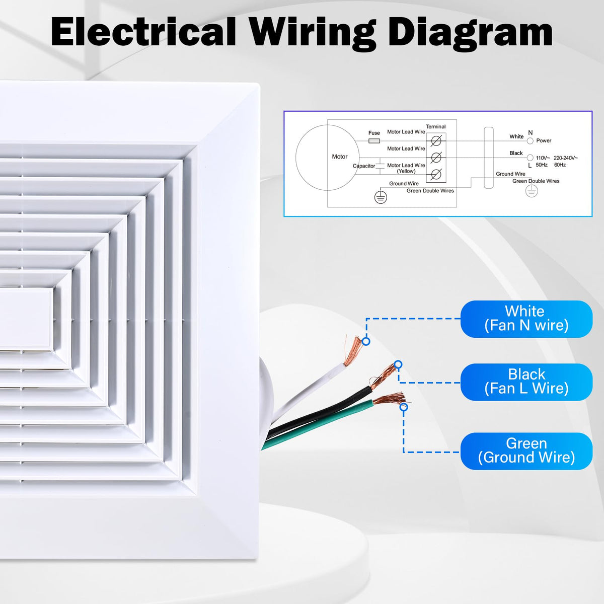 Q: What is the airflow capacity of this bathroom exhaust fan?A: This exhaust fan has a powerful airflow capacity of 110 CFM, which helps quickly remove moisture and odors from bathrooms, showers, and other areas.