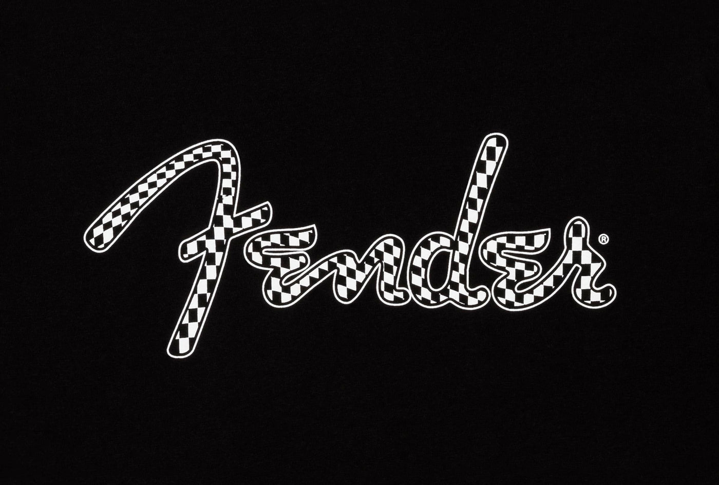 Fender Spaghetti Wavy Checker Logo T-Shirt, 100% Cotton, Black, Xl