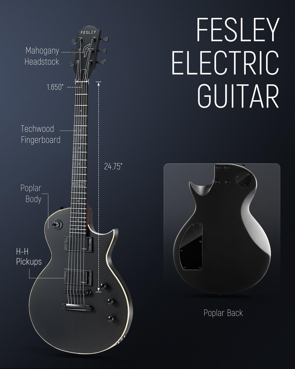 Unleash Your Creativity With The Fesley Electric Guitar - The Ultimate Blend Of Versatility, Craftsmanship, And Style. It'S Designed For Musicians Of All Skill Levels, Offering Smooth And Dynamic Tones Perfect For Rock And Blues. Crafted With High-Quality Mahogany Wood, The Guitar Ensures Durability And Excellent Resonance. The Humbcker Pickups Deliver A Wide Range Of Tones, While The Four Control Knobs Let You Easily Adjust Volume And Tone. The Package Includes Everything You Need To Get Started: An Lp Guitar, Gig Bag, Connecting Cable, Strap, And Instruction Manual. Whether You'Re Jamming Or Performing Live, This Guitar Is Designed To Meet Your Needs.