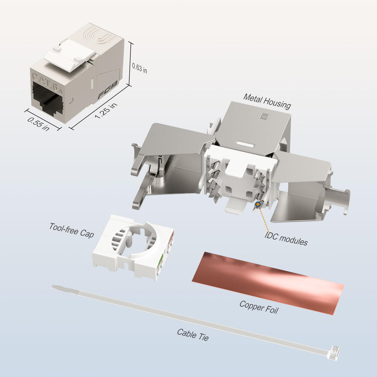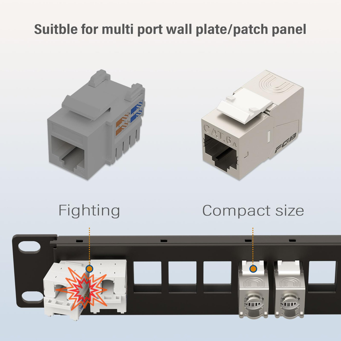Fgb 12 Pack Shielded Cat6A Rj45 Keystone Jacks Each Rj45 Male To Female Keystone Provides Up To 10 Gbps Speeds Over 100M(328 Ft) Of Cat6A Ethernet Cabling And Backwards Compatible With Cat6, Cat5E And Cat5. Robust Die-Cast Housing Provides Superior Shielding And Suppress Emi/Rfi Electromagnetic Interference. Tool Free Cap Has Universal T568A And T568B Labels. Home Or Office Application Fgb Shielded Cat6A Rj45 Keystone Jacks Are Compatible With Most Patch Panels Or Wall Plates. Our Toolless Keystone Is The Best Option For Making 23 To 26 Awg Unshielded Twisted Pair (Utp) Cable Termination. Widely Used In Home, Company, Surveillance, Engineering And Other Network Cabling. Customer Care We Are Committed To Offering Our Clients High-Quality Goods And Services. If You Have Any Questions, Kindly Reach Out To Us By Using The 'Contact Seller' Option On The Order Details Page, And We Will Get Back To You As Soon As We Can.