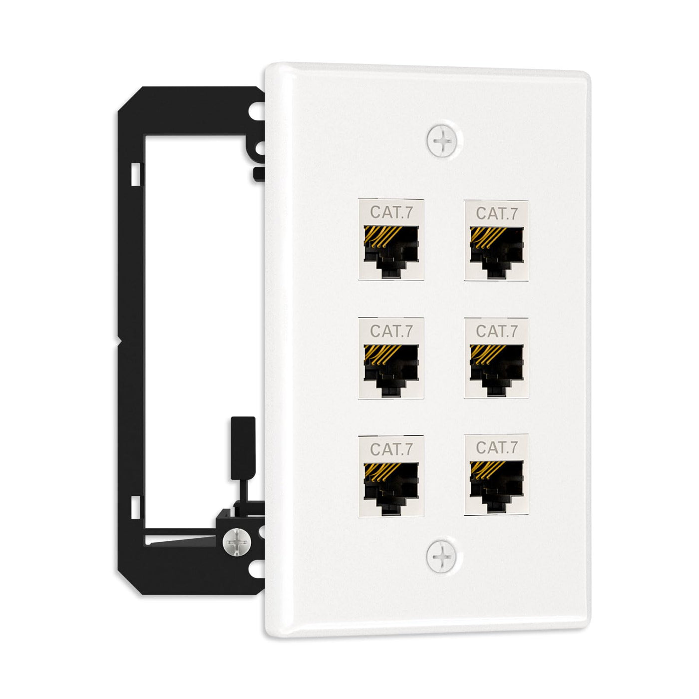 Fgb Ethernet Wall Plate 6 Port With Mounting Bracket, Keystone Wall Plate With Bracket And Cat7 Shielded Rj45 Keystone Coupler,