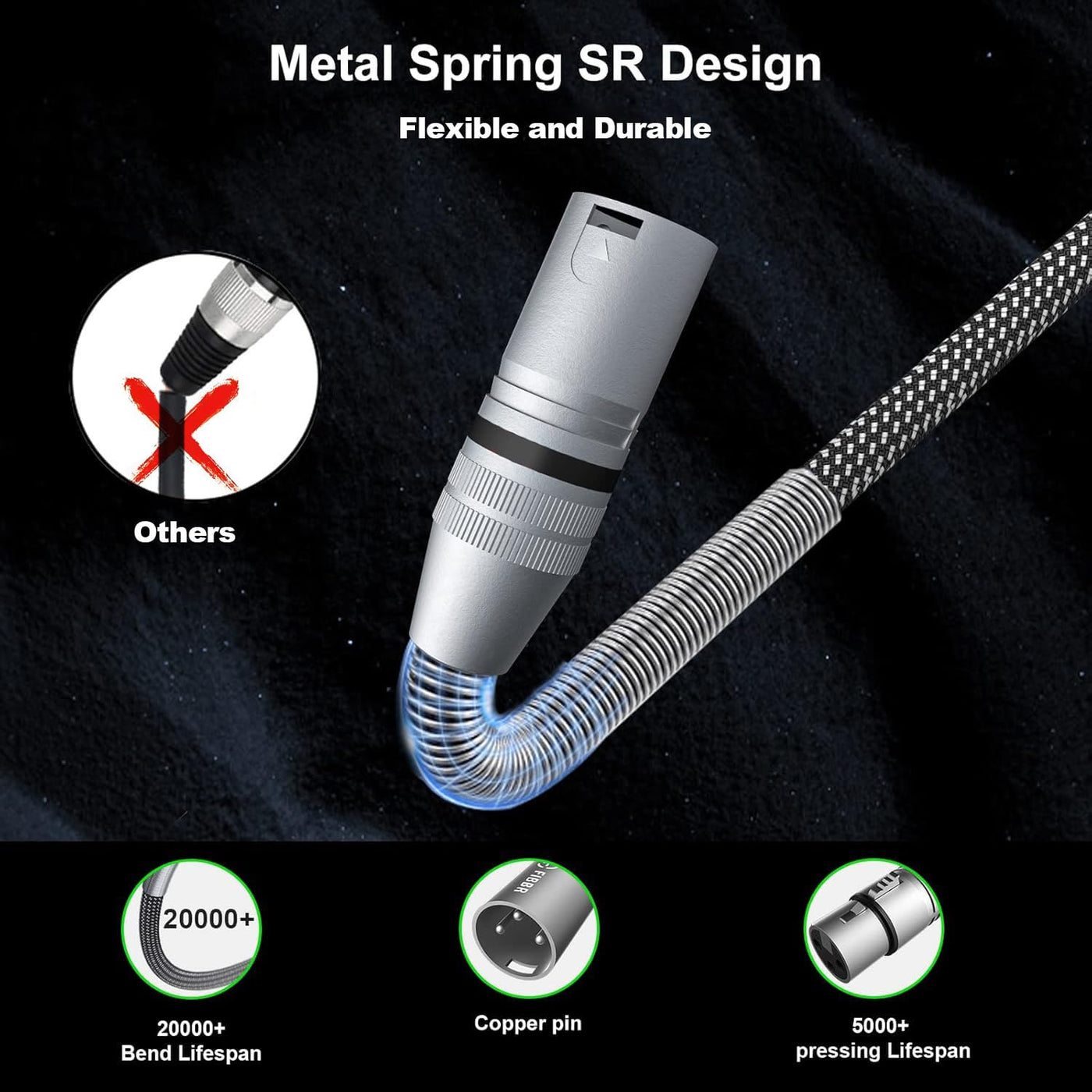 ???Multi-Layers Of Shielding?This Xlr Cable Combined Oxygen-Free Copper Conductor With Multi Shielding(Cotton, Copper, Carbon Fiber,Tpe Jacket, Nylon Braided), Can Be Effective In Shielding 99% Of The Clutter And Static Interference Signals, Eliminating Noise,Attaining The Maximum Cancellation Of Hum And Ensuring High Fidelity Sound Quality. | ???Metal Spring Sr Design?This Xlr Male To Female Cable Is Built In Metal Spring Sr Design. It Is More Flexible And Durable, Never Rupture. It Is Also More Durable Than Common Sr. The Material Of Balanced Xlr Cable Connector Is Made Of Heavy Duty Alloy, It Is Very Hard. 3-Pin Is Made Of Copper. Providing The Best Connectivity To The Device. Anti-Oxidation & Anti-Corrosion. | ???Plug And Play?: This Xlr Microphone Cable Is User Friendly. With Plug And Play Design, You Can Easily Connect Microphone With 3-Pin Xlr Devices By Balanced Xlr Cable. Features A Self-Locking Design Allow It Will Grip Your Devices Firmly And Securely And Never Get Loose When You Move. | ???Flexible Nylon Braided?Microphone Cable Built With Nylon Braided Housing Enhances Flexibility And Durability. Bend Test Up To 20,000+ Times Without Reducing Microphone Cord Flexibility And Ensure Its Optimal Performance. | ??[Widely Compatibility]: This Balanced Mic Cable Designed For Equipments With 3-Pin Xlr Connectors Such As Patch Bays, Preamplifiers, Speakers, Microphones And Lighting Equipment.Widely Used At Stage Sound, Ktv, Professional Sound Reinforcement And More. Please Feel Free To Contact Us If You Have Any Questions, Professional And Prompt Customer Service Will Be Offered Within 24 Hours.