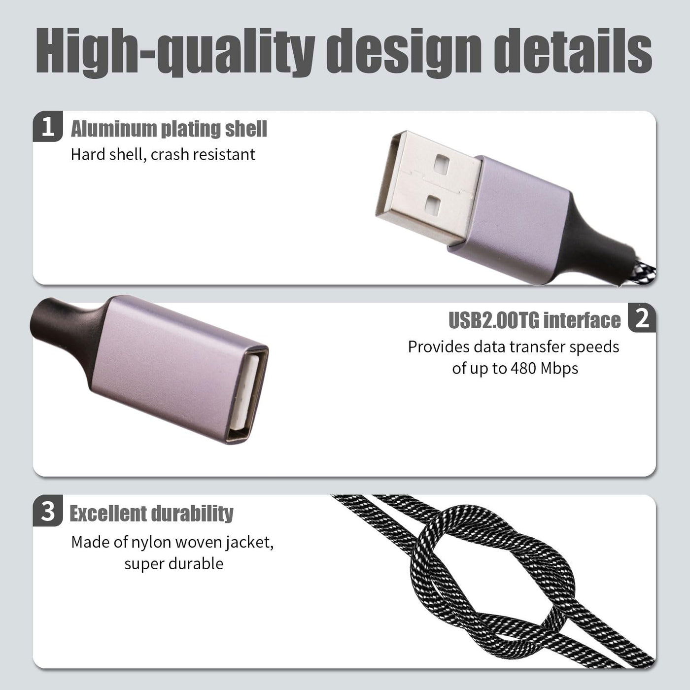 Usb Splitter Cable Usb Y Splitter Adapter Dual Usb 2.0 Power Cord Extension For Charging/Data Transfer