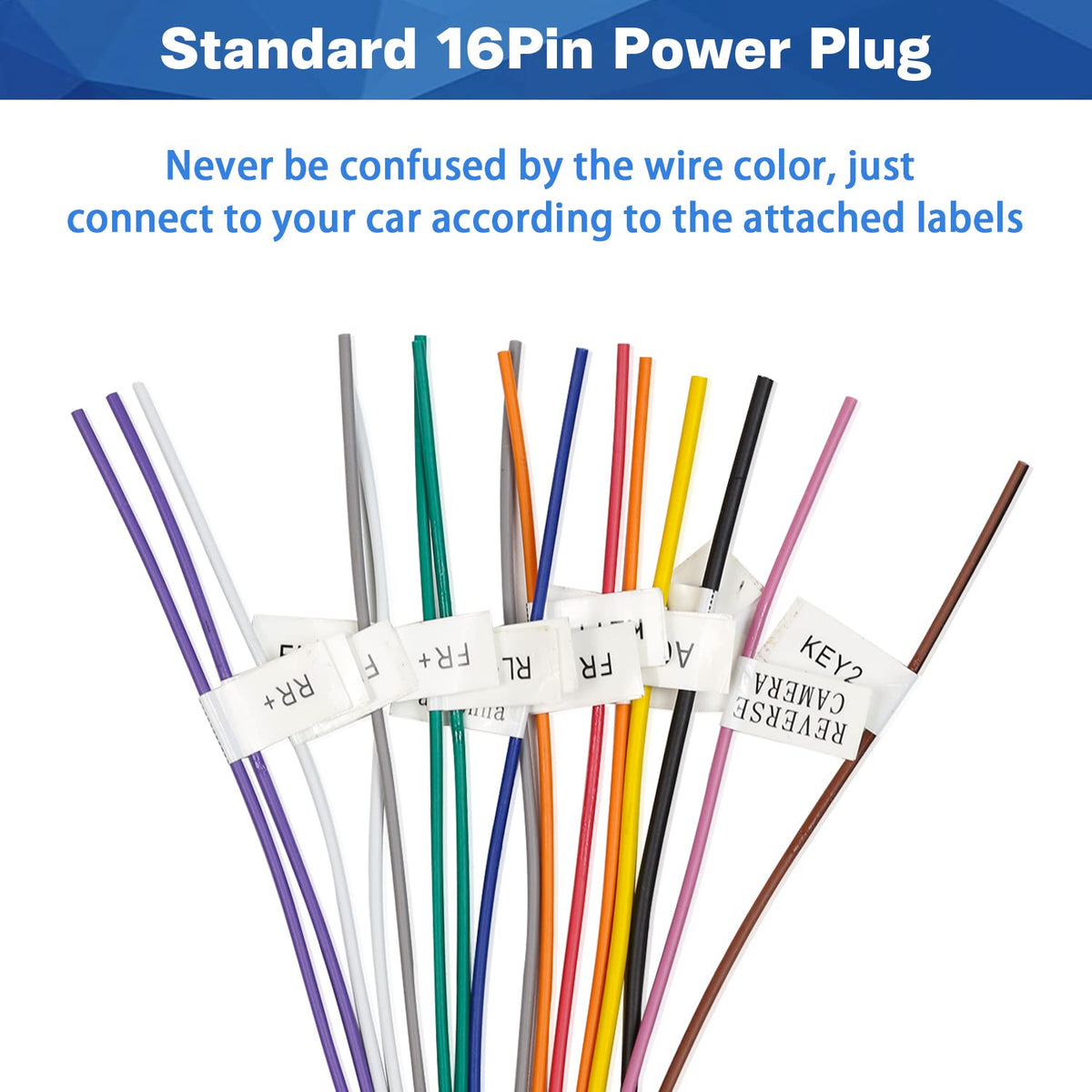 Features 16 Pin Radio Harness For All 2Din Or 1Din Car Stereos High Conductivity Car Stereo Wiring Harness Support Reverse And Key Cables Match Most Car Head Unit Prestripped Car Radio Power Speaker Cable Factory Color Code And Easy To Connect 16 Pin Connector Definition Acc: Connect To Ignition Switch (Red) B+ Batteries : To Battery +12V (Yellow) Gnd : To Battery Negative B- (Black) +Ill : To Illuminate Backlight B+ (Orange) Reversing Wire: To Backup Camera Detection Wire (Brown) Sw1 Key1 : To Steering Wheel Line 1 (Pink) Swc Key2 : To Steering Wheel Line 2 (Orange/Brown) Ant : To Auto Antenna (Blue) Green Wire: Left Rear Speaker (+) Green And Black Wire: Left Rear Speaker (-) White Wire: Left Front Speaker (+) White And Black Wire: Left Front Speaker (-) Purple Wire: Right Rear Speaker (+) Purple And Black Wire: Right Rear Speaker (-) Gray Wire: Right Front Speaker (+) Gray And Black Wire: Right Front Speaker (-) Specification Cable Length: 7.48 Inches Socket Width: 0.79 Inches Socket Height: 0.59 Inches Product Weight: 20 G Material: Abs And Copper Compatibility: Car Stereo With 16 Pin Power Socket Package 1X 16Pin Iso Car Radio Harness Adapter