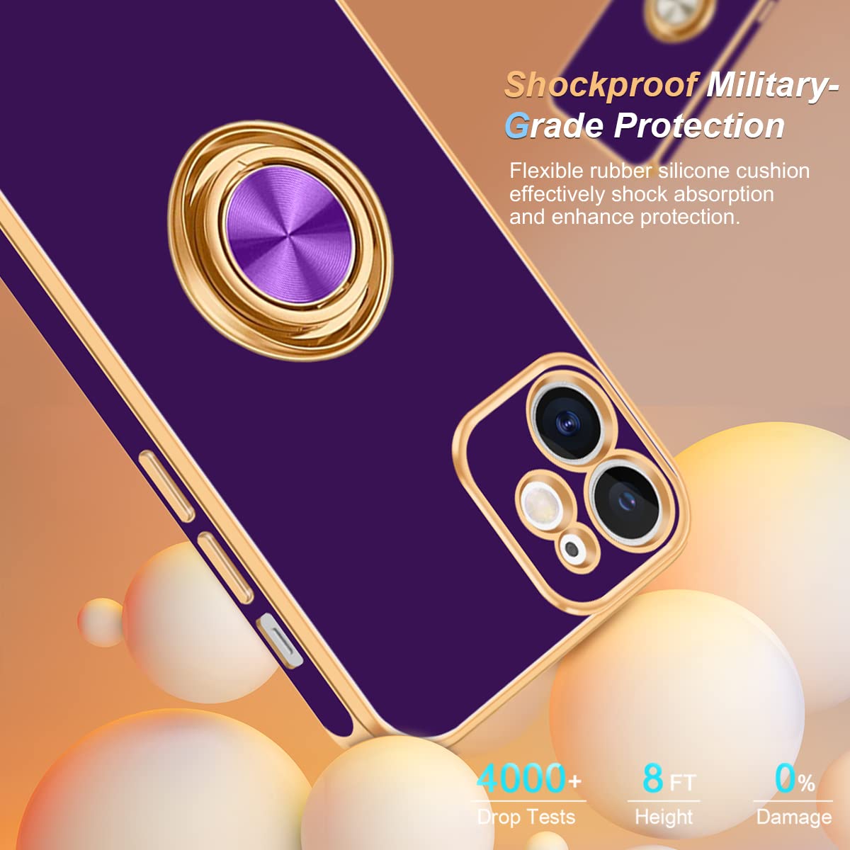 Fingic Iphone 11 Case With 360 Rotatable Ring Holder Magnetic Kickstand Slim Soft Tpu Shockproof Protective Cover Case For Men Women Specifications: 1. Compatible Model: Iphone 11 Only 2. Color:Dark Purple/Gold Package Includes: 1Xcell Phone Case For Iphone 11 6.1 Inch (2019 Released) Key Features: 1. Fingic Hybrid Case Provides Shock Absorption And Scratch Prevention While Maintaining A Slim Profile. 2. Built-In A Ring Kickstand, Which Can Rotate 360 Horizontally And 180 Vertically. 3. Metal Plate On The Ring Back Can Attach To Magnetic Car Mount For Navigation When Driving. Not Compatible With Wireless Charging. 4. This Case Made With Soft Tpu Material, With Gold Plated Edges, Has A Beautiful Appearance And Comfortable Hands Feeling. 5. Interior A Soft Felt Lining Further Protects The Screen From Scratches Or Abrasions. 6. Raised Lip Protects The Front Screen And The Back Camera Lens From Shockproof And Drop Protection. 7. Precise Cutouts Make All Buttons, Speakers And Charging Ports Easily Accessible. Questions & Answers: 1.Does This Case Have A Built In Screen Protector ? Not Including A Screen Protector. 2. Does This Case Fit For Iphone 11 Pro? Not Fit For. 3. Does This Case Fit For Iphone 11 Pro Max ? Not Fit For.