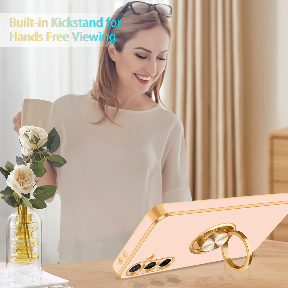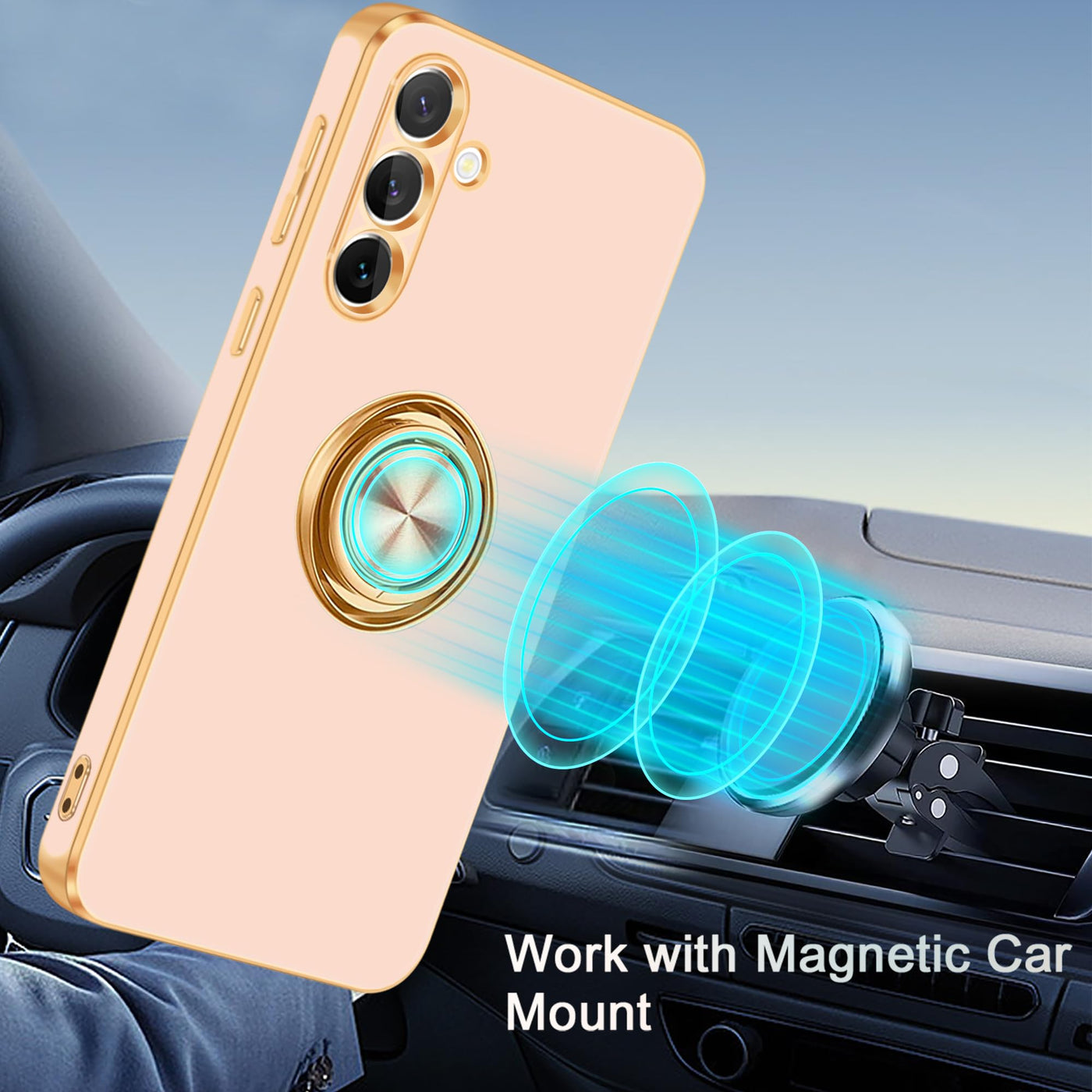 Fingic Samsung Galaxy S24 Fe Pink Case With 360 Rotatable Ring Holder Magnetic Kickstand Slim Soft Tpu Rugged Bumper Shockproof Protective Cover Case For Samsung Galaxy S24 Fe For Women Men Specifications: Compatible Model:For Samsung Galaxy S24 Fe,6.7 Inch(2024 Released) 2. Color:Rose Gold/Gold Package Includes: 1X Cell Phone Case For Samsung Galaxy S24 Fe Key Features: 1.Fingic Hybrid Pink Samsung Galaxy S24 Fe Case Provides Shock Absorption And Scratch Prevention While Maintaining A Slim Profile. 2.Built-In A Ring Kickstand, Which Can Rotate 360 Horizontally And 180 Vertically. 3.Metal Plate On The Ring Back Can Attach To Magnetic Car Mount For Navigation When Driving. 4.This Case Made With Soft Tpu Material, With Glitter Gold Plated Edges, Has A Beautiful Appearance And Comfortable Hands Feeling. 5.Interior A Soft Felt Lining Further Protects The Screen From Scratches Or Abrasions. 6.Raised Lip Protects The Front Screen And The Back Camera Lens From Shockproof And Drop Protection. 7. Precise Cutouts Make All Buttons, Speakers And Charging Ports Easily Accessible. Questions & Answers: 1.Does This Case Compatible With Wireless Charging? Not Compatible With Wireless Charging Becuase Of The Ring Holder. 2.Does This Case Have A Built In Screen Protector ? Not Including A Screen Protector,But It Is Friendly To A Screen Protector. 3.Does This Case Fit For Samsung Galaxy S24/S24+/S24 Ultra ? Not Fit For.