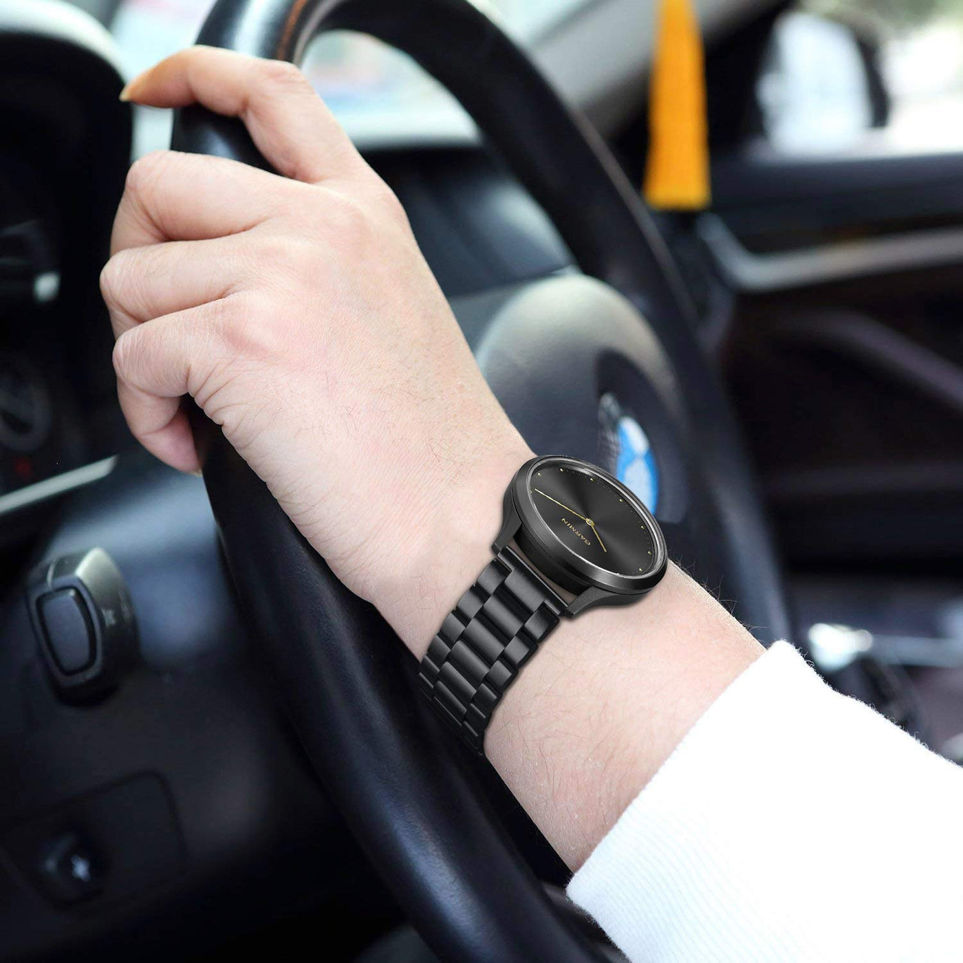 Fintie, A Quality Product Within Your Reach! Tech Specs: 1. Material: Solid Stainless Steel 2. Color: Black, Silver, Rose Gold 3. Band Width: 20Mm 4. For Wrist Size: 6.49 Inches - 8.86 Inches (165Mm-225Mm) (There Might Be Minor Bias Because Of Manual Measurement.) Compatibility: Compatible With Garmin Forerunner 55 / Forerunner 245 / Forerunner 245 Music / Vivoactive 5 / Vivoactive 3 / Vivoactive 3 Music / Vivomove Hr / Vivomove Luxe / Vivomove Style 42Mm / Vivomove 3 44Mm / Garmin Venu Sq / Garmin Venu /Garmin Venu Sq Music / Forerunner 645 / Forerunner 645 Music / D2 Delta S And Other Traditional Or Smart Watches With Standard 20Mm Lug Width. Features: 1. Premium Stainless Steel Mesh Mixed With Fashion, Nobility, Durability And Elegance. 2. Coming With Quick Release Spring Pins, Easy To Replace Or Exchange The Strap Band Without Tools Within Seconds. 3. Up To 8 Links Can Be Removed To Adjust The Wrist Size By Using The Provided Link Removal Tool. (Note: Please Read The Instructions In The Package.) 4. Adopt Unique Dual Button Folding Clasp, Firmly Closed, And Prevent Loosen Automatically. Whats In The Box: 1 X Garmin Watch Band 3 X Quick Release Spring Bars 1 X Upgraded Link Removal Tool 1 X User Manual