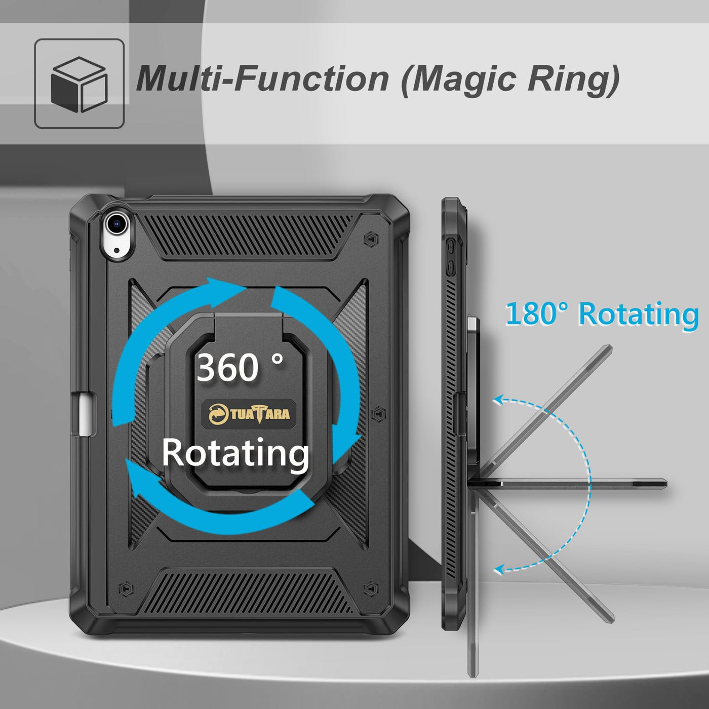 The Tuatara Magic Ring Series Uni-Body Hybrid 360 Rotating Multi-Functional Grip Case Is Now Available! This Case Is Forged From Quality Polycarbonate And Offers The Ultimate Drop Defense On All Possible Sides. Claim The Peace Of Mind You Deserve With This Reptile-Like Hard Shell Case. Fintie, A Quality Product Within Your Reach! Materials: -Dual-Layer Technology - Premium Polycarbonate And Anti-Stretch Thermoplastic Polyurethane (Tpu). Design: Designed By Fintie Llc In Usa. Tuatara Magic Ring Series Multi-Functional Grip Stand Case Provides Shock Absorption And Scratch Prevention Yet Maintains A Sleek Profile. - Front Cover Design Offers Easy Installation - 360 Degree Rotating Multi-Adjustable Stand Supports Various Vertical And Horizontal Viewing Angles - Multi-Functional Grip Can Serve As A Handle, Convenient For Holding And Carrying Around - Dual-Layer Technology - Premium Polycarbonate + Stretch Resistant Tpu Design Serves As A Powerful Impact And Shock Defense Bumper - Unique Internal Grooves To Assist With Drop Protection And Heat Dissipation - Air Padding Technology - Better Drop Protection And Air Circulation - Tactile Covers For All Buttons And Ports - Quick Access To All Important Features Such As Buttons, Camera, Speaker, And Ports - Sleek Profile And Many Color Options Available Compatibility 10.9 Inch Ipad Air 5Th Generation 2022, Ipad Air 4Th Generation 2020
