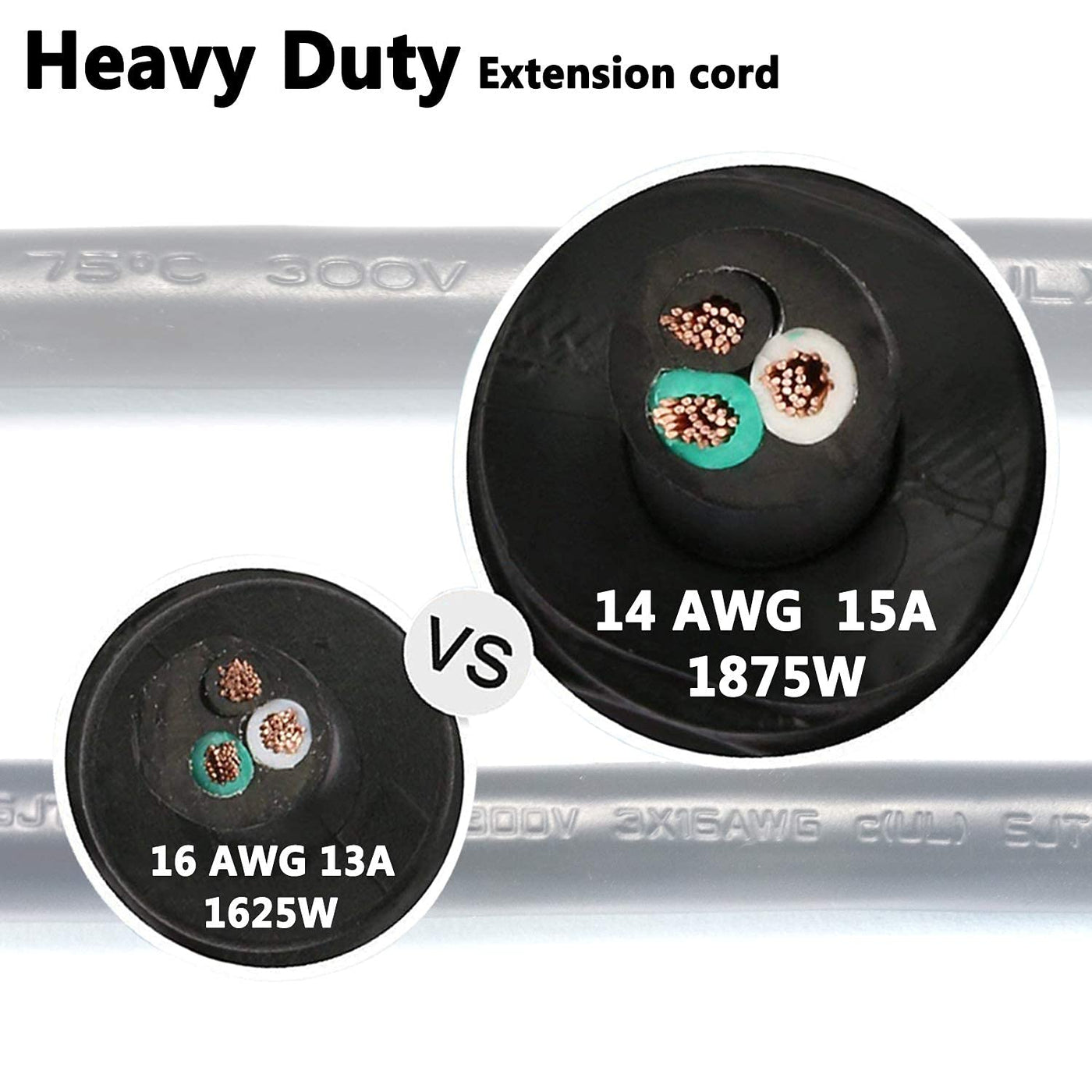Firmerst 10Ft 1875W Flat Plug Extension Cord 14 Awg Black 15A