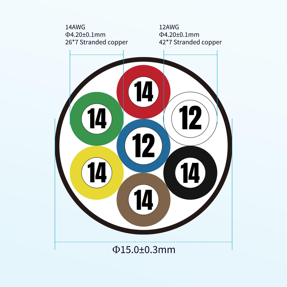 Firmerst 12/2 And 14/5 Pure Copper 7 Way Trailer Wire 10 Feet