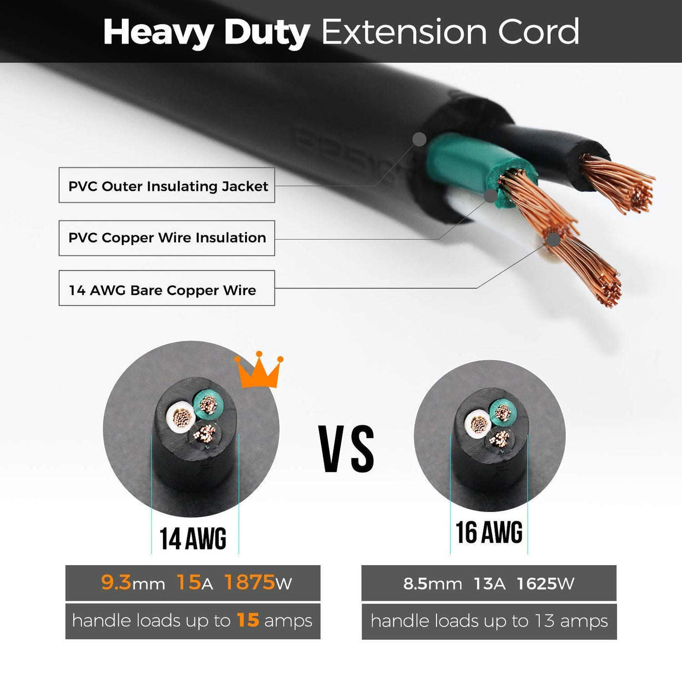 Firmerst 1875W Flat Plug Extension Cord 3 Feet 14 Awg 15A Black, Pack Of 3