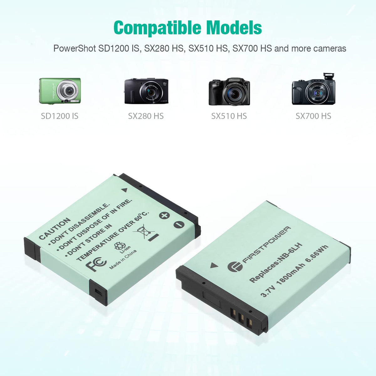 Firstpower 2 Pack Nb 6Lh Nb 6L Batteries And Dual Usb Charger Compatible With Canon Powershot S120, Sx510 Hs, Sx280 Hs, Sx500 Is