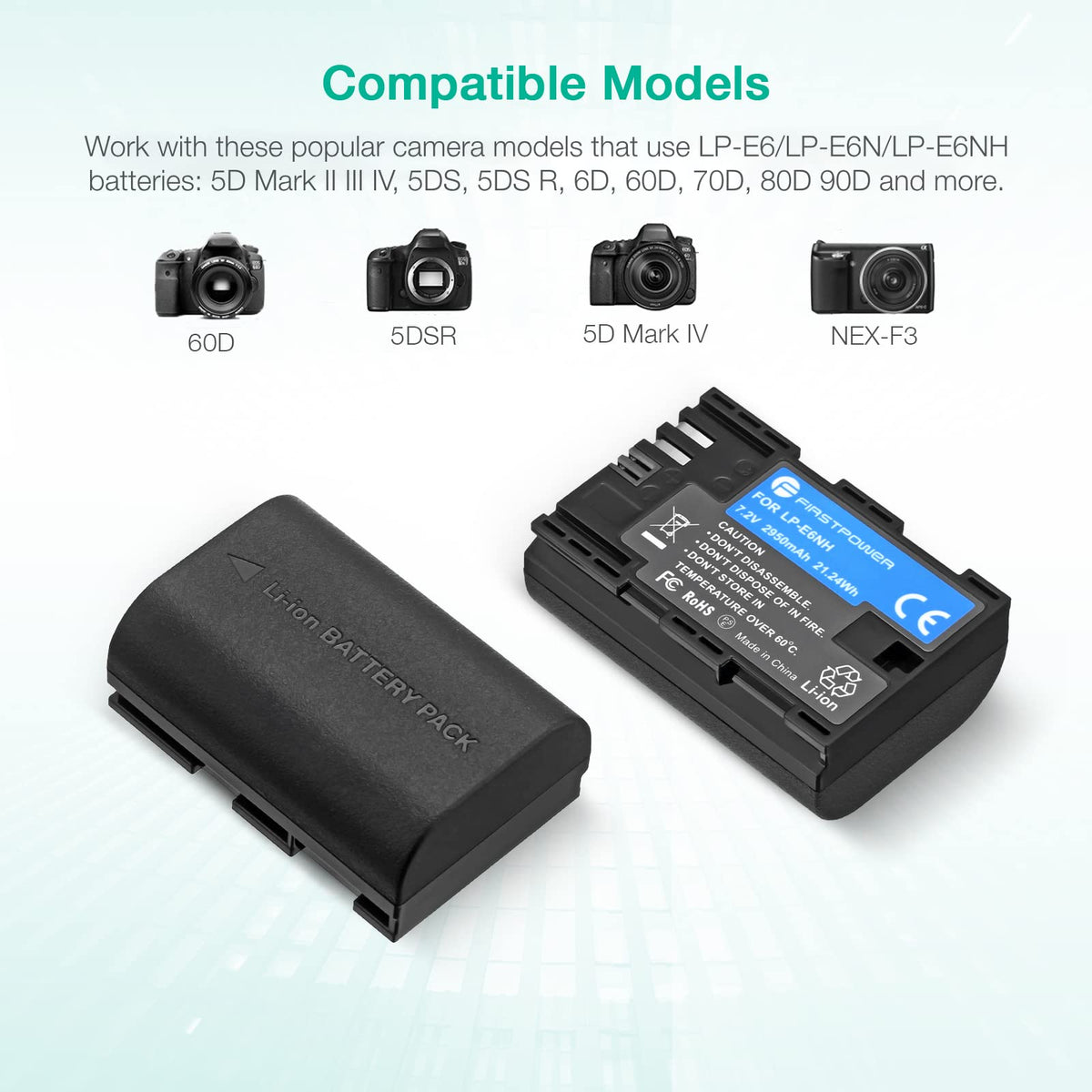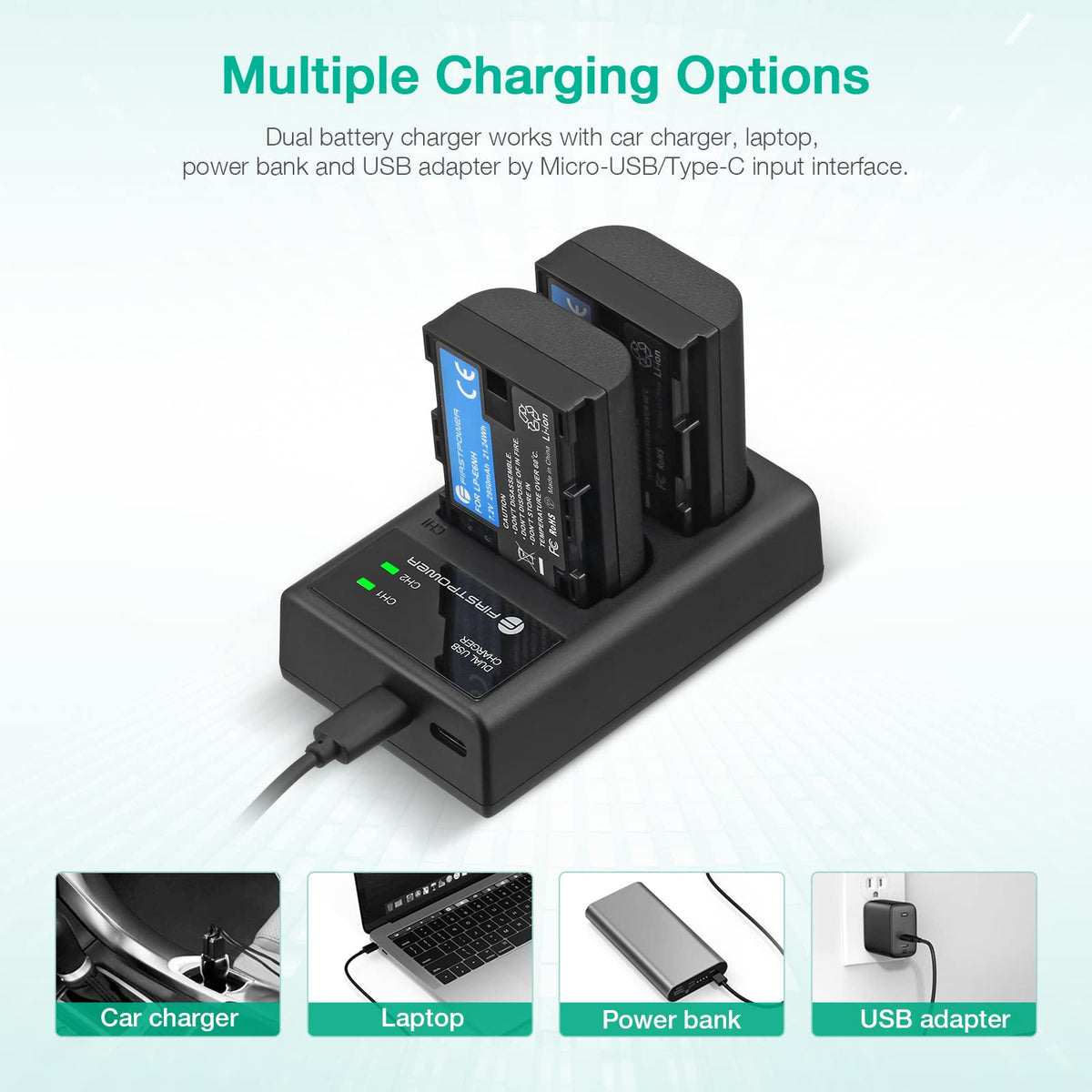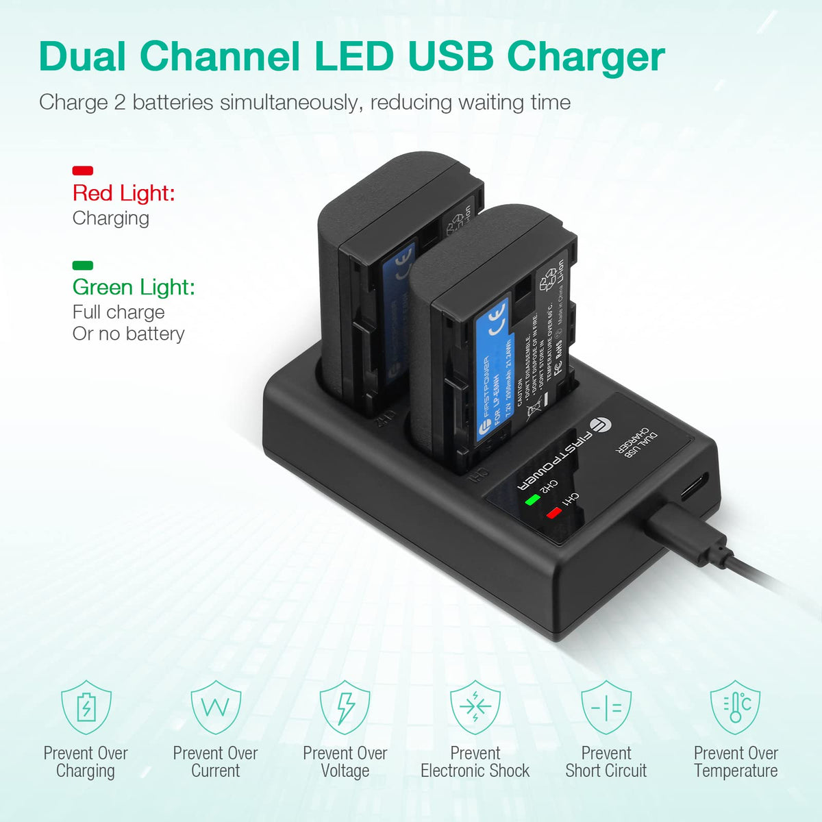 Firstpower Lp E6Nh Battery And Usb Dual Charger Compatible With Canon Eos R, R5, R6, 5D Mark Ii Iii Iv, 5Ds, 6D, 6D Mark Ii, 7D,