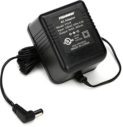 Q: What are the specifications of the Fishman 910R power supply?A: The Fishman 910R power supply provides 9V DC output with a center negative polarity and has a current rating of 200 milliamps, making it suitable for various electronic devices.