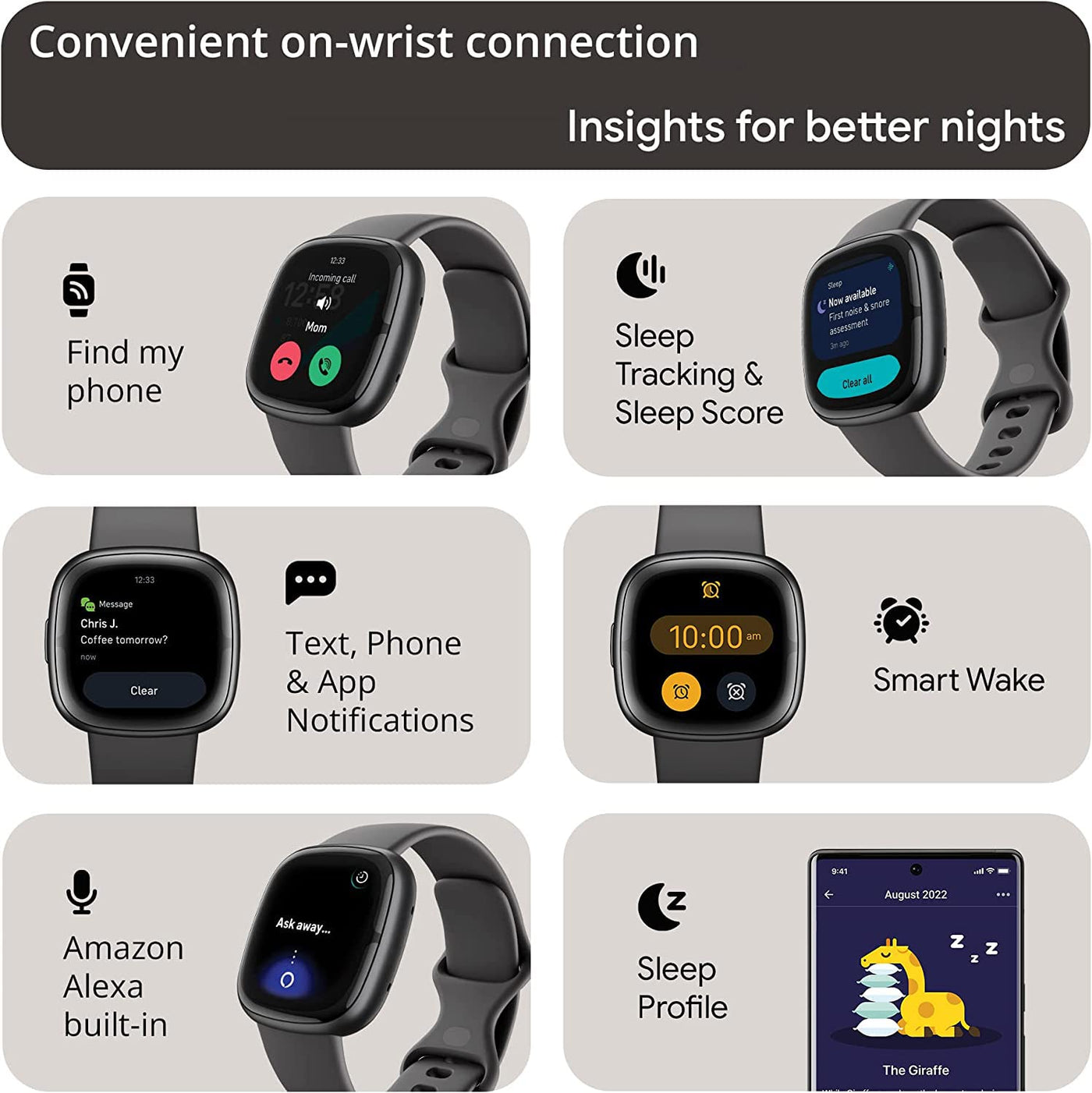 Learn To Manage Stress, Sleep Better And Live Better!Get Help Identifying Stress And Get The Tools To Better Manage It. Learn More About Your Sleep And How To Improve Your Rest With Detailed Nighttime Tracking And A Unique Sleep Profile. Track Key Heart-Health Indicators So You Can Make More Informed Wellness Decisions. Plus Sense 2 Is Packed With Advanced Activity Tracking And Smartwatch Features And Includes 6-Months Of Fitbit Premium Membership. Fitbit Is Part Of The Google Family. **Features***Stress & Sleep*All-Day Body-Response Trackingstress Notificationseda Scan App For Stress Managementreflectionsstress Management Scorerelax Breathing Sessionssleep Tracking & Sleep Stagessleep Profilesleep Score Smart Wake Alarm*Health*Spo2 (Blood Oxygen) Trackingirregular Heart Rhythm Notificationscompatible Ecg App Lets You Assess Your Heart Rhythm For Atrial Fibrillation (Afib) - A Heart Rhythm Irregularityresting Heart Ratehigh & Low Heart Rate Notificationsheart Rate Variabilityskin Temperature Sensorbreathing Ratewellness Reportmenstrual Health Tracking*Fitness*Heart Rate Trackingdaily Readiness Scoreactive Zone Minutesbuilt-In Gpsexercise Modessteps, Distance & Calorieswater Resistantcardio Fitness Scoreautomatic Exercise Trackingworkouts On Your Phone*Smarts & More*Call, Text And App Notificationson-Wrist Bluetooth Callsalexa Built-Ingoogle Mapsgoogle Walletfitbit Payfind My Phonealways-On Display Modedo Not Disturb & Sleep Modecompatible With Ios And Android Devicesslim Designup To 6 Day Batteryfast Chargingcolor Touchscreenfitbit Premium Membership Not Intended To Provide Medical Or Scientific Data. It Is Intended To Help You Manage Your Well-Being And Keep Track Of Your Information.