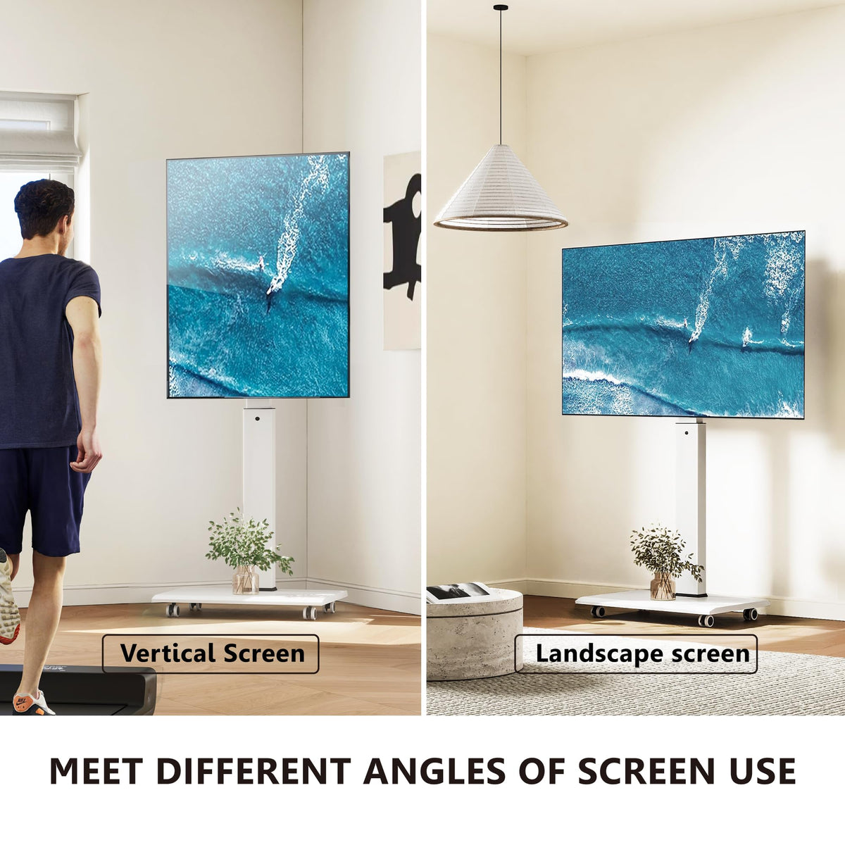 Q: Can I rotate the TV mount from landscape to portrait?A: Yes, the FITUEYES Rolling TV Stand features a landscape to portrait rotating mount, allowing you to easily switch the orientation of your TV based on your viewing preferences.