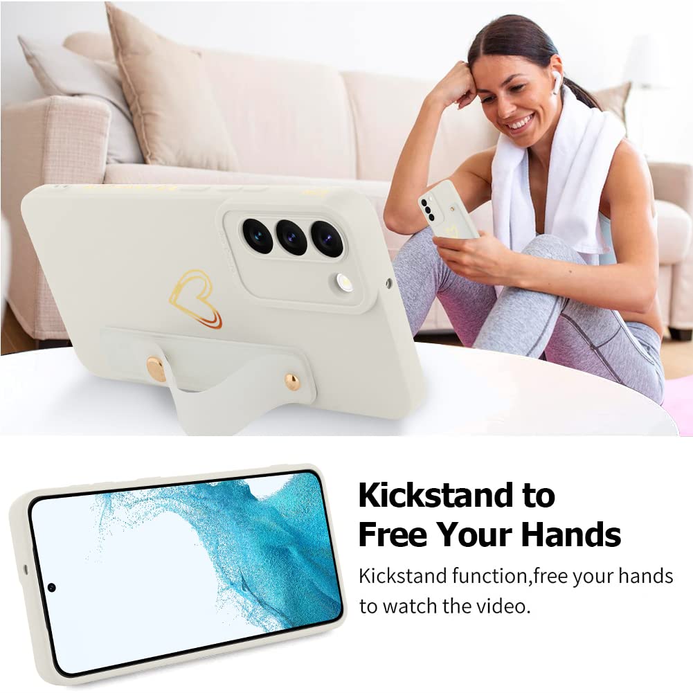 Fiyart Designed For Galaxy S22 Plus 5G Case With Phone Stand Holder Cute Love Hearts Pattern Slim Protective Camera Protection Cover With Wrist Strap For Women Girls For Galaxy S22 Plus 5G 66-White Material:Tpu Special Design The Samsung S22 Plus 5G Hearts Case Makes Your Phone Different And Eye-Catchingcomes With A Wrist Band Kickstand Which Can Free Your Hands While Watching Tv Or Are Busy With Other Stuffs Wireless Charging Compatible With Wireless Charging And Power Sharing With The Case On Fantastic Gift Perfect As A Gift For Your Daughter,Girlfriend,Wife On Birthdaychristmas Day