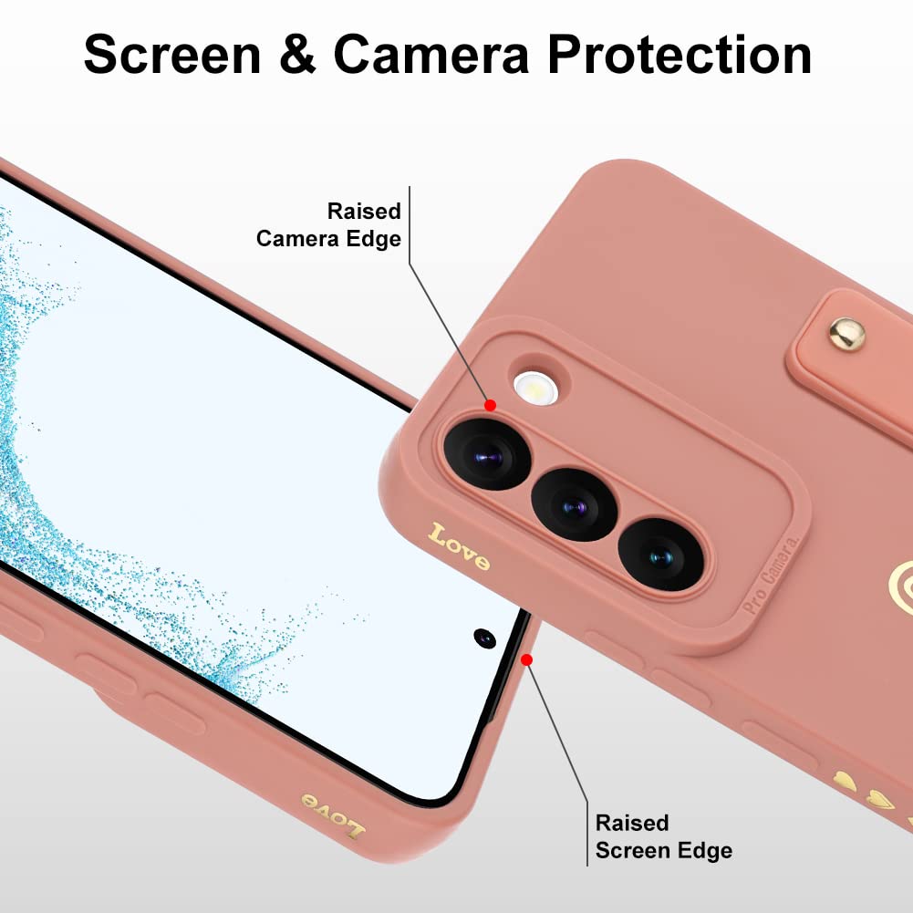 Fiyart Designed For Galaxy S22 5G Case With Phone Stand Holder Cute Love Hearts Pattern Slim Protective Camera Protection Cover With Wrist Strap For Women Girls For Galaxy S22 5G 61-Pink Material:Tpu Special Design The Samsung S22 5G Hearts Case Makes Your Phone Different And Eye-Catchingcomes With A Wrist Band Kickstand Which Can Free Your Hands While Watching Tv Or Are Busy With Other Stuffs Wireless Charging Compatible With Wireless Charging And Power Sharing With The Case On Fantastic Gift Perfect As A Gift For Your Daughter,Girlfriend,Wife On Birthdaychristmas Day The Color Will Slightly Different From The Color Showded Cuz The Computer Resolution Difference