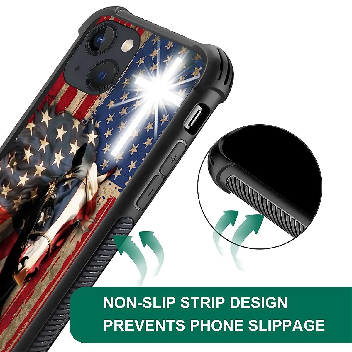 [Compatibility] This Product Is Designed For Iphone 13 To Ensure A Perfect Fit With The Device. [Product Features]: 1.Unique Design: The Phone Case Features A Distinctive Red American Flag Horse Cross Graphic Design For A Unique Look That Reflects Your Personal Style. 2.High-Quality Materials: High-Quality Tpu Material Is Selected,Which Has Excellent Durability,Is Not Easy To Turn Yellow,Maintains A Long-Lasting Fresh Appearance,And Feels Comfortable. 3.Protection Function: The Edge Of The Phone Case Is Raised By 1.5Mm,Which Effectively Protects The Phone Camera And Prevents Scratches And Collisions. 4.Fit Design: The Phone Case Fits Tightly With The Device,And The Holes Are Precisely Positioned To Ensure That All Buttons And Interfaces Are Easily Accessible. 5.Shockproof And Scratch-Resistant: It Has Good Shock And Scratch Resistance,Which Can Effectively Protect The Safety Of Your Phone In Daily Use. 6.Wireless Charging Support: This Phone Case Supports Wireless Charging Function,Which Is Convenient For Users To Charge Their Phones At Any Time Without Removing The Shell. [Scope Of Application] This Phone Case Is Only Suitable For Iphone 13, Ensuring The Best Protection Effect.Iphone 13