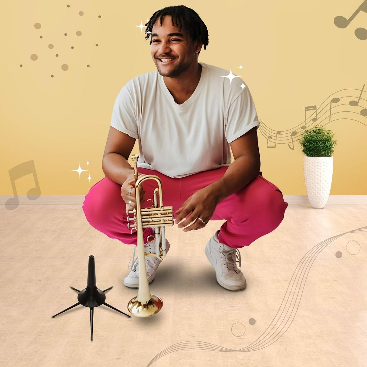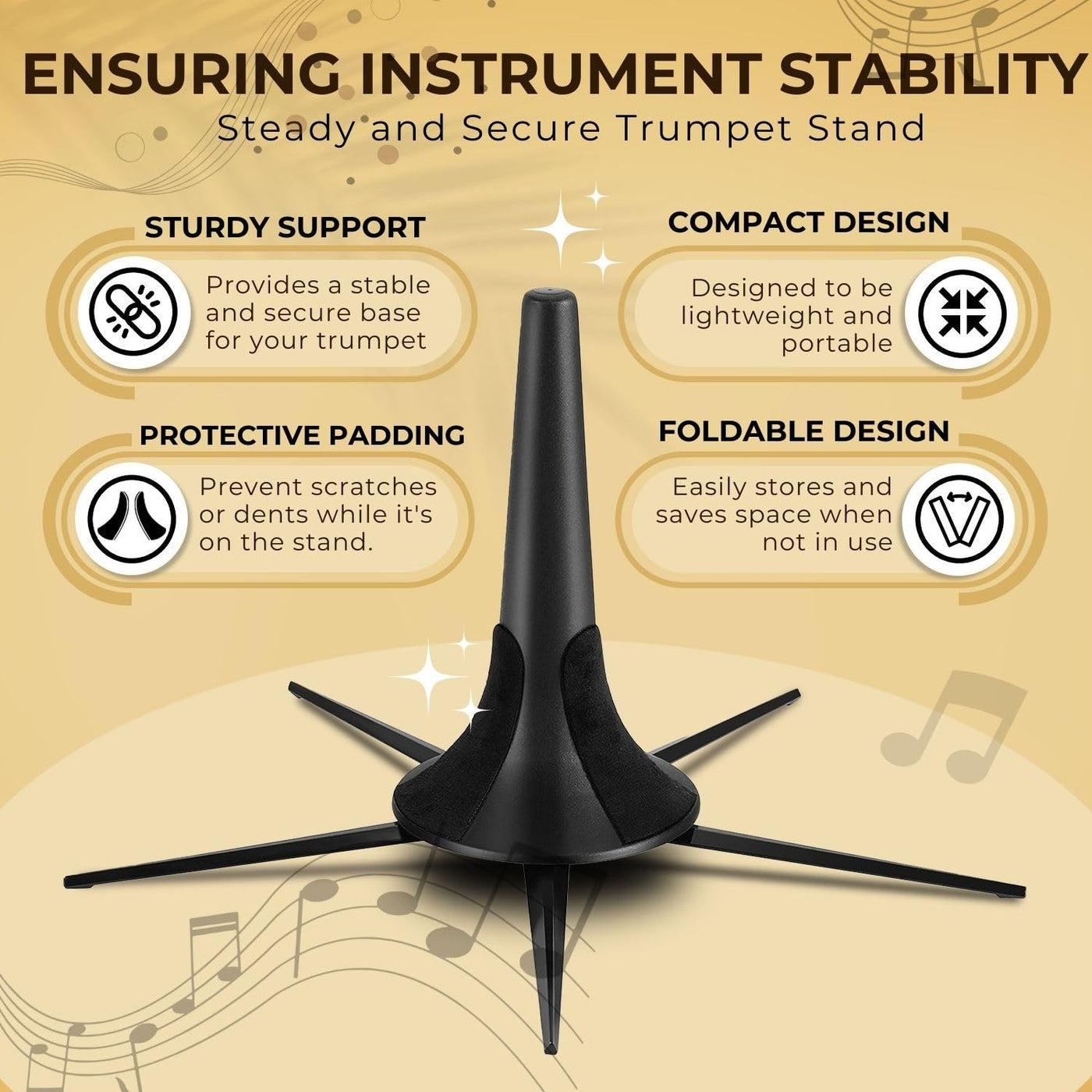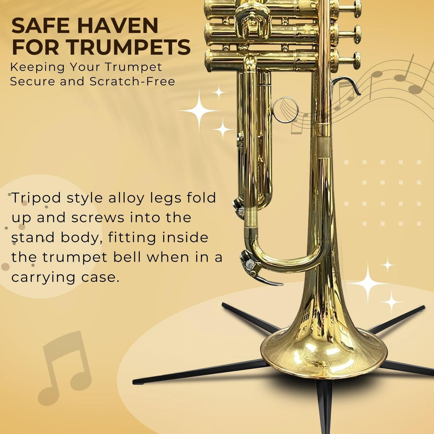 Flexzion Trumpet Stand Holder Portable - 5 Metal Leg Foldable Compact Tripod Display Stand With Anti-Scratch Felt Pads, Stable S