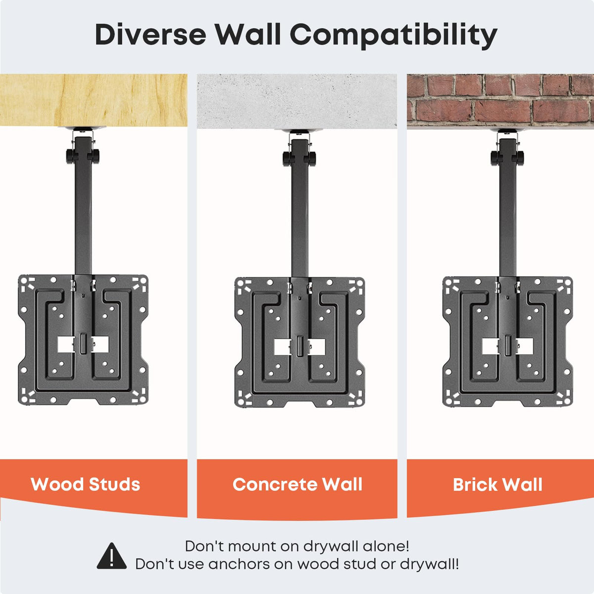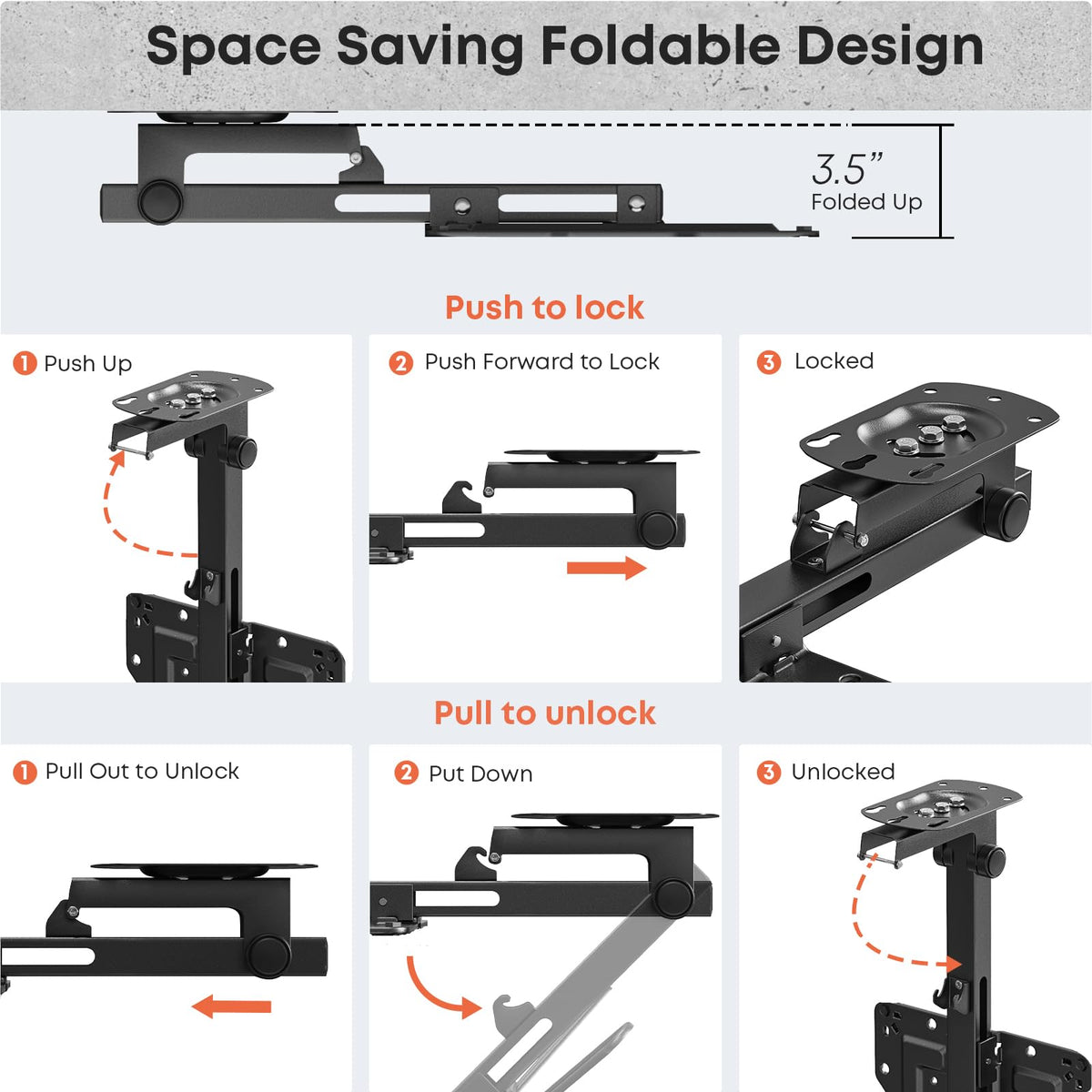 Flip Down Ceiling TV Mount for 19 50 inch Manual Folding Height Adjustable Drop Down TV Mount for Flat and Pitched Roof, Swivel, Max Load 44 lbs, Max VESA 200x200 mm, Black