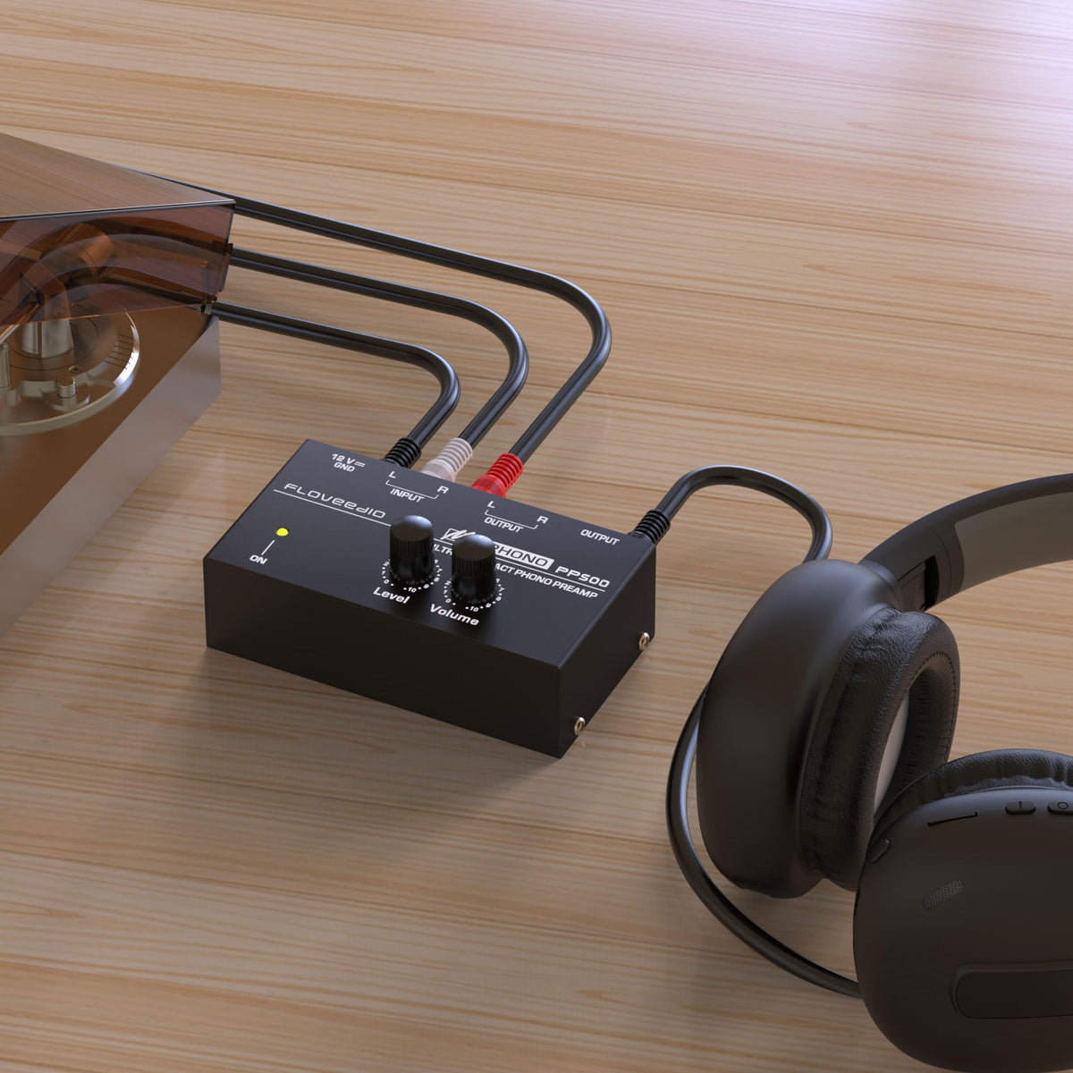 Floveedio Phono Preamp For Mm Turntable Mini Stereo Audio Hi Fi Phonograph/Record Player Preamplifier With Trs Headphone Jack An