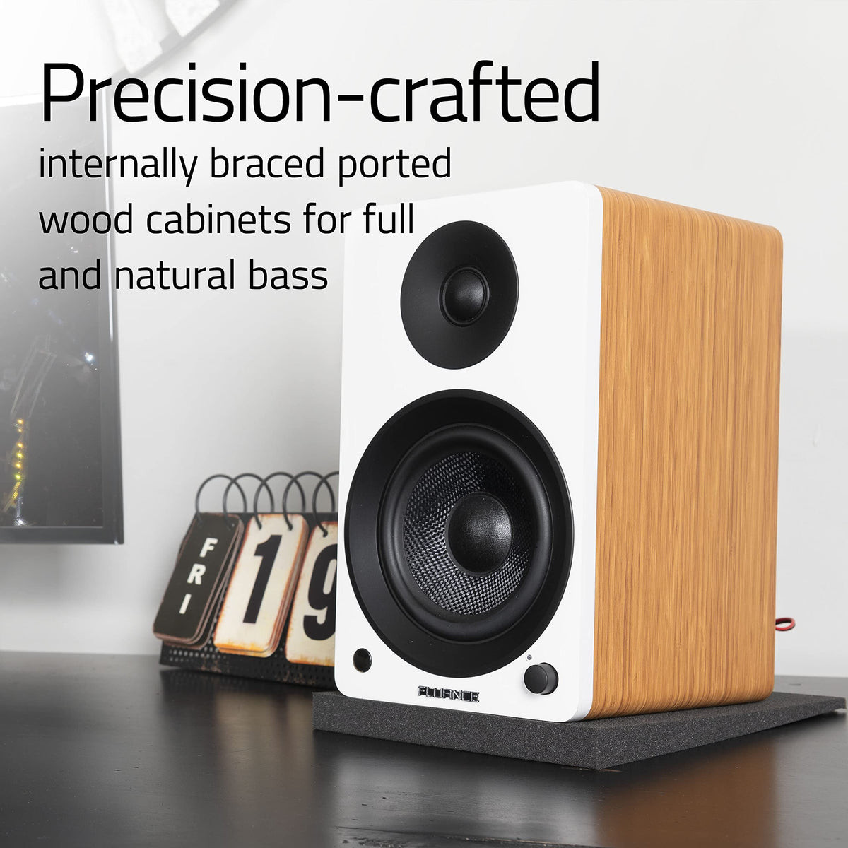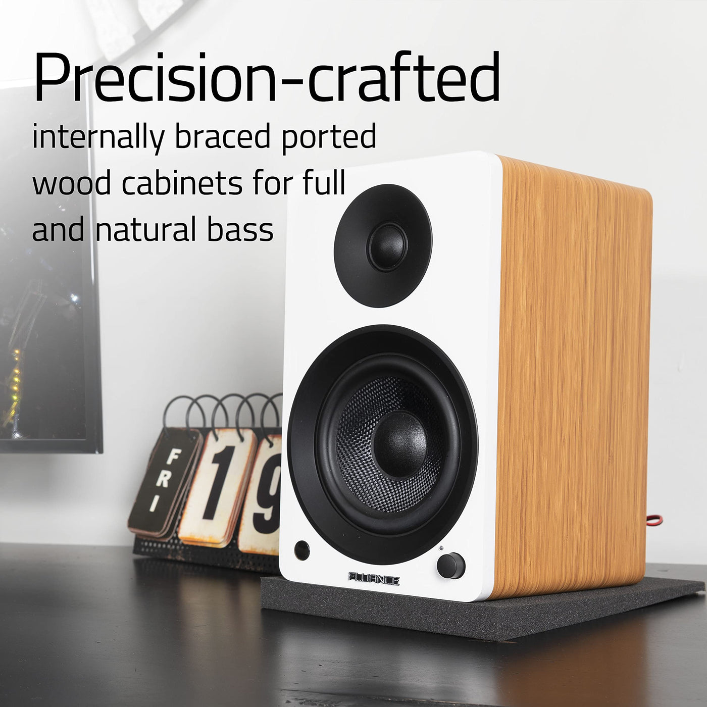 Offering A Whole New Level Of Performance, The Fluance Ai41 Powered Bookshelf Speakers Deliver Outstanding Clarity, Immersive Stereo Imaging And Room-Filling Sound. Expertly Engineered, These Active Speakers Deliver Exquisite Audio Reproduction The Way The Artist Intended.Exhilarating Soundenjoy Vivid Dynamic Range With These Dedicated Left And Right Speakers Bringing Out The Subtle Nuances Of A Jazz Performance Or The Raw Power Of A Live Rock Concert. These Hifi Speakers Deliver Detailed, Clean And Natural Sound That Are As Impactful As Tower Speakers.Premium Componentsneodymium Magnet Silk-Dome Tweeters Produce Natural Highs, While The Woven, Glass Fiber Drivers Deliver Detailed Mids And Deep Natural Bass For Stunning Musical Playback. Enhanced With Dsp To Produce A More Balanced Frequency Response, And An Integrated Class D Amplifier That Delivers A Robust, Powerful Sound.Meticulously Engineered Enclosurethe Ported Wood Cabinet Is Acoustically Tuned To Accentuate The Sound With Deep And Natural Bass. The Ai41 Ware Designed To Reduce Unwanted Resonance With Internal Bracing That Results In Precise And Distortion-Free Sound.Versatile Connection Possibilitiesenjoy A Pure Analog Sound By Pairing These Powered Speakers Directly With A Turntable. Add Exhilarating Audio To Your Computer Setup To Give Your Music, Movies And Video Games The Sublime Soundtrack They Deserve. Level Up Your Tv Audio With Stereo Speakers To Give The Big Picture The Big Sound, Or Simply Pair Any Bluetooth Device For Wireless Music Streaming.Complete Music System - No Amplifier Requiredforget Stripping Speaker Wire Or Mapping Inputs On An Audio Receiver; These Powered Bookshelf Speakers Easily Connect Through Bluetooth, Rca And Optical Connections, Allowing You To Effortlessly Enjoy Your Music. Add Even More Bass With The Sub Out Connection. Customize Your Sound Profile With The Adjustable Eq.