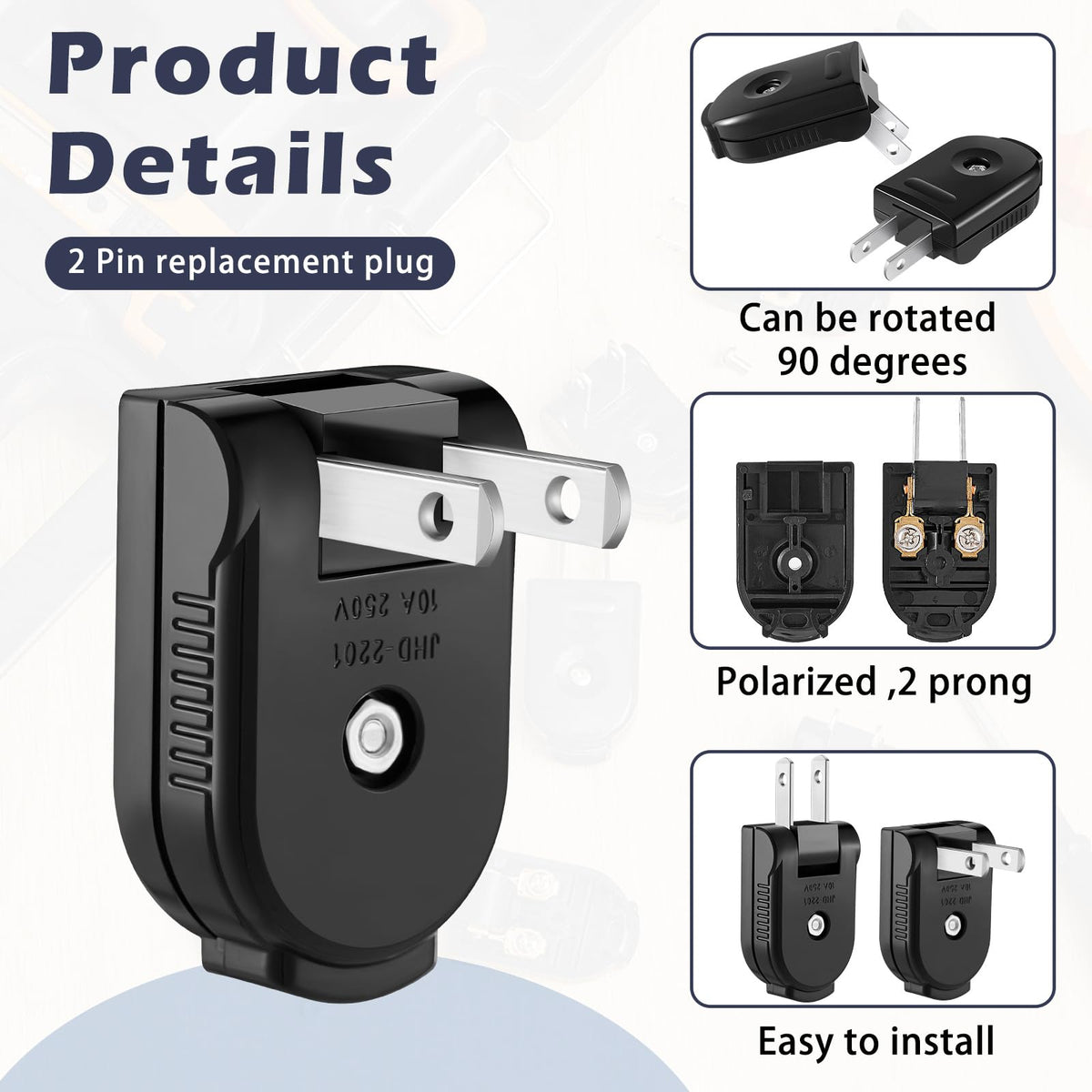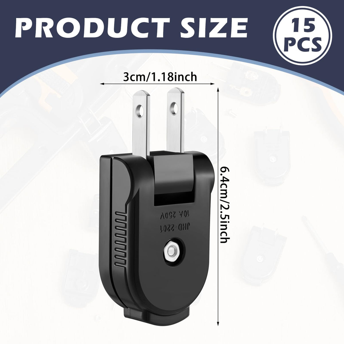 Flutesan 15 Pcs Extension Cord Replacement Plug 2 Prong 125V 15A Male Power Plug Rotatable Electric Plugs Lamp Plug For Small Ap