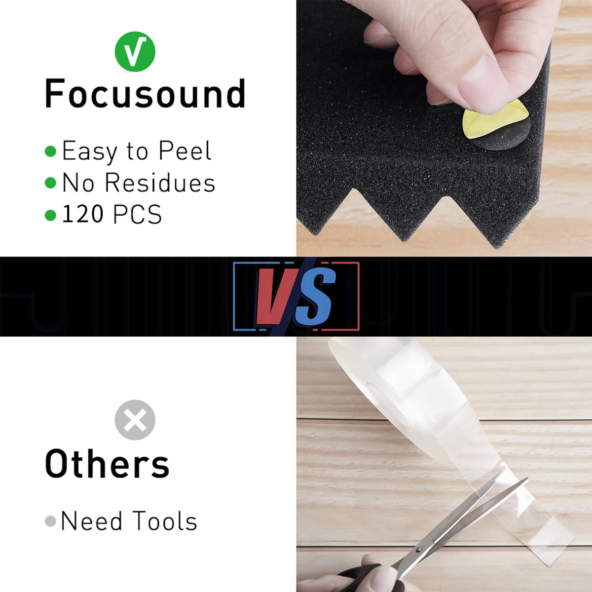 Improve The Acoustics In Your Space With Focusound Acoustic Foam.Sound Impacts Your Daily Life - And Creating The Best Environment, Not Just Acoustically, For Your Needs Means Everything To Us.Focusound Acoustic Foam Is Great For Sound Deadening At Home Or In A Professional Studio. These Handy Foam Panels Can Be Placed Side By Side For An Aesthetically Pleasing Feel That Will Surely Make Your Room Look And Sound Great. Our Acoustic Foam Is Used For High, Mid, And Low-Frequency Ranges To Aid In Blocking Sound And Stopping Echoes Inside Your Room. Smaller Panels Offer More Choices For Placement And Design.Note:&Nbsp;Please Keep The Surface Clean, Smooth, And Dry To Make The Tape Sticker More Firm.Our Acoustic Foam Is Compression Transportation, Has To Be Placed In A Ventilated Place Waiting For 2 Days To Return To Normal Size. If The Shape Recovery Is Not Very Good, It Can Be Placed In Water To Quickly Recover, Soak In Water For 1 Minute And Wring It, It Takes 3-4 Hours To Recover Quickly.&Nbsp;Package Contents:24 * Acoustic Foam1 * 120Pcs Strong Double-Side Adhesive Tape1* User Manual
