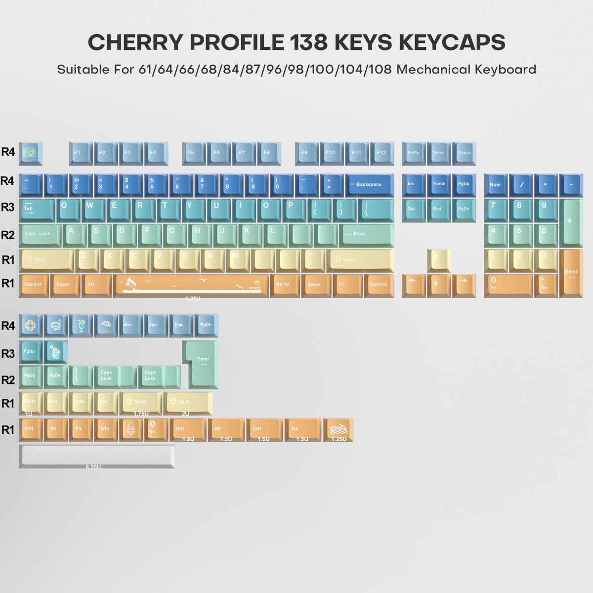 Fogruaden Pbt Keycaps Dye-Sublimation Cute Keycaps, Cherry Profile, 138 Keys Keycaps Set For Cherry Gateron Mx Switches Mechanical Keyboard(Sandybeach)