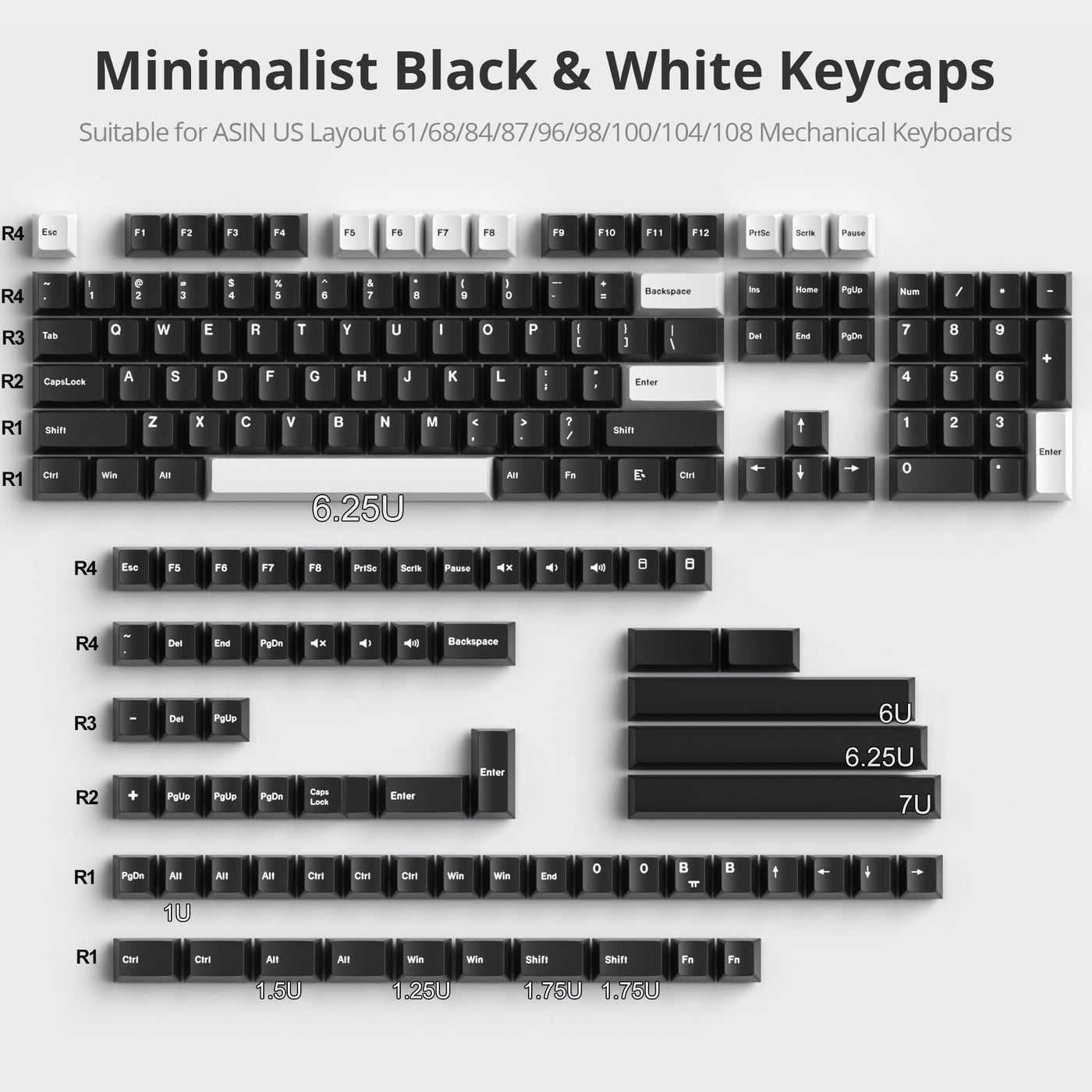 Fogruaden White On Black Keycaps, Cherry Profile Pbt Doubleshot Keycaps, Minimalist Style Black And White Keycaps, 168 Keys Cust